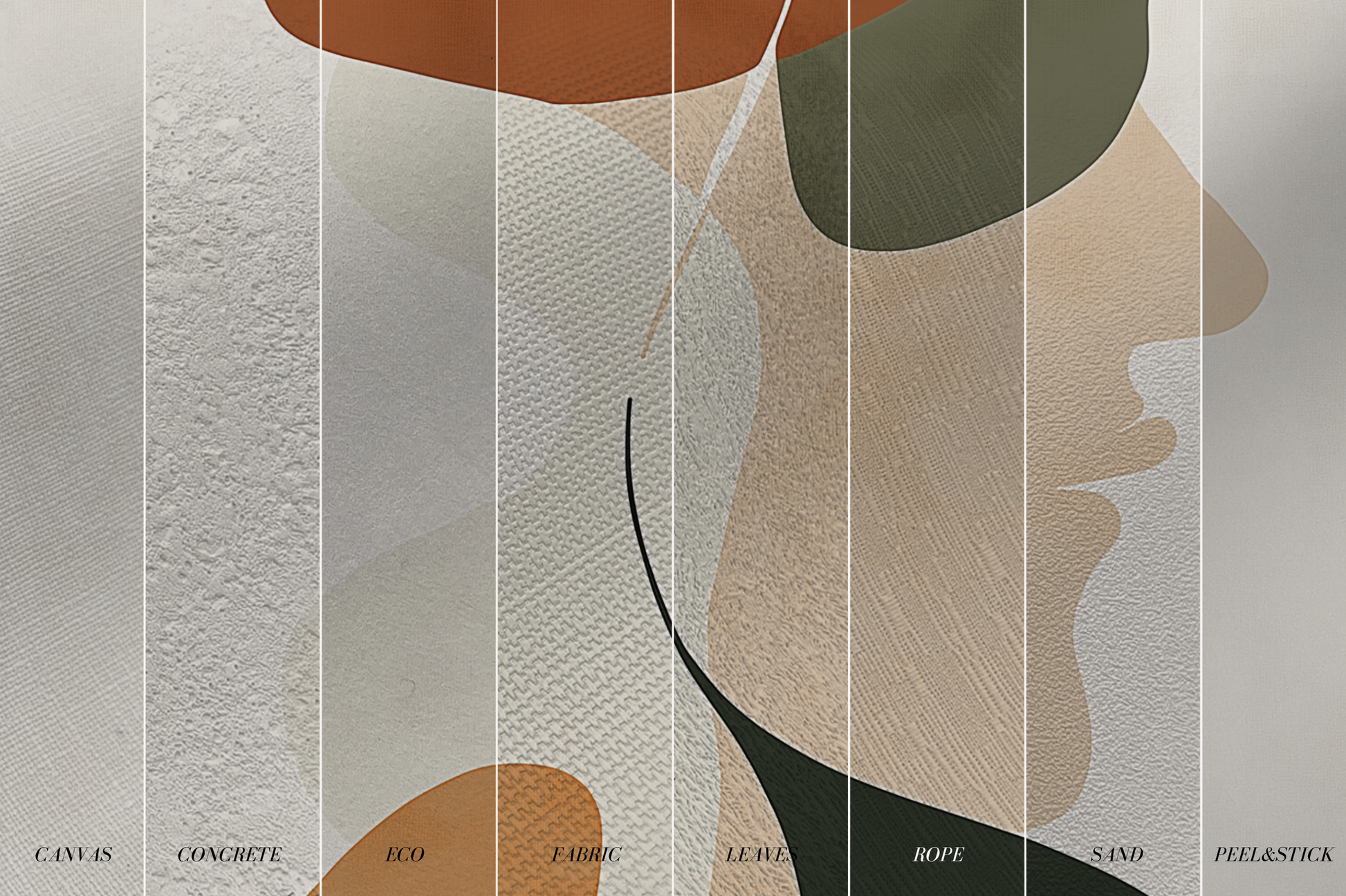Inspired by the graceful contour of memory and the softness of the human form, this Japandi wallpaper blends abstract profile lines with warm, earthy tones. A gentle expression of introspection, connection, and calm. A space to reflect. A space to be.