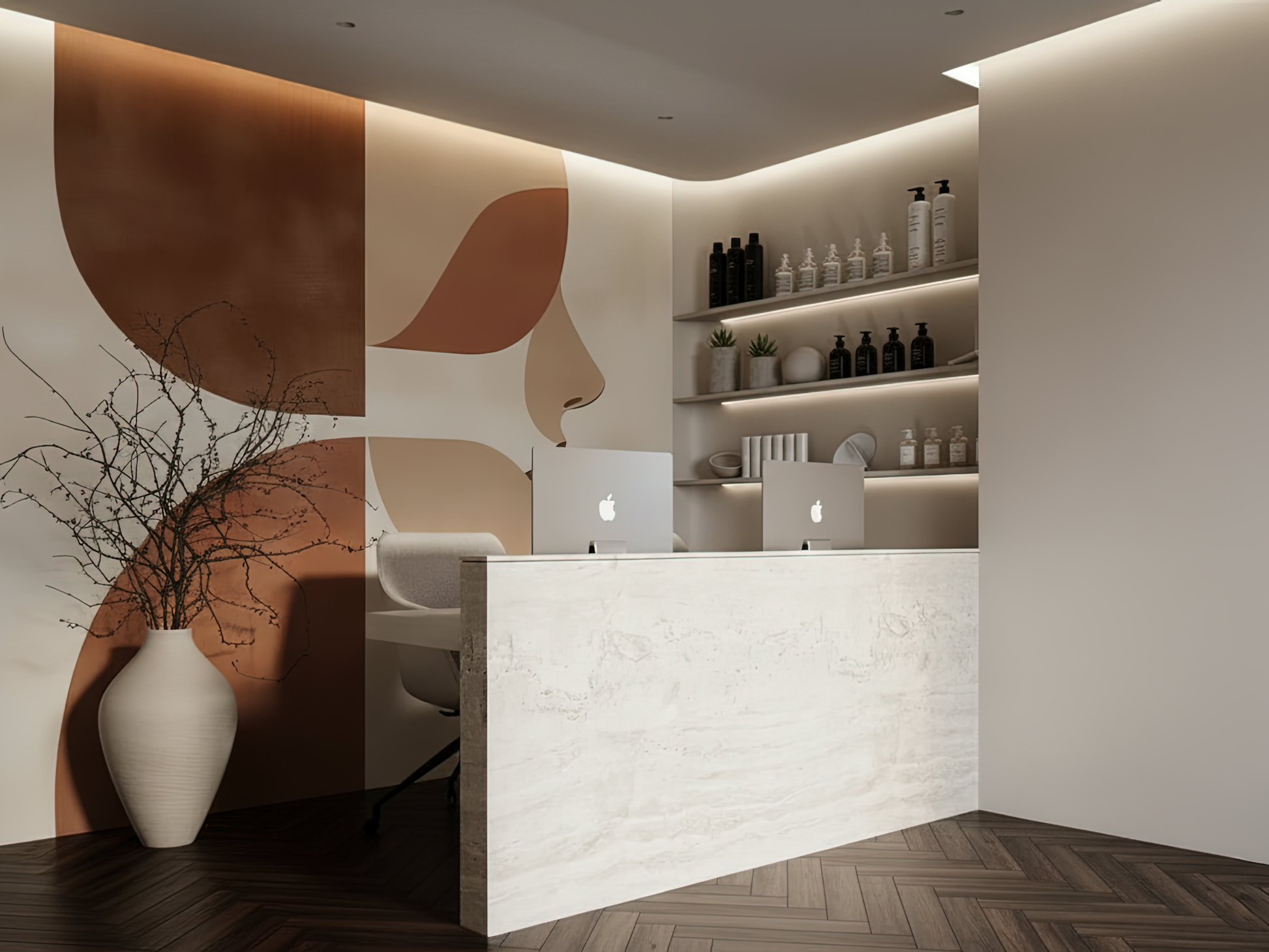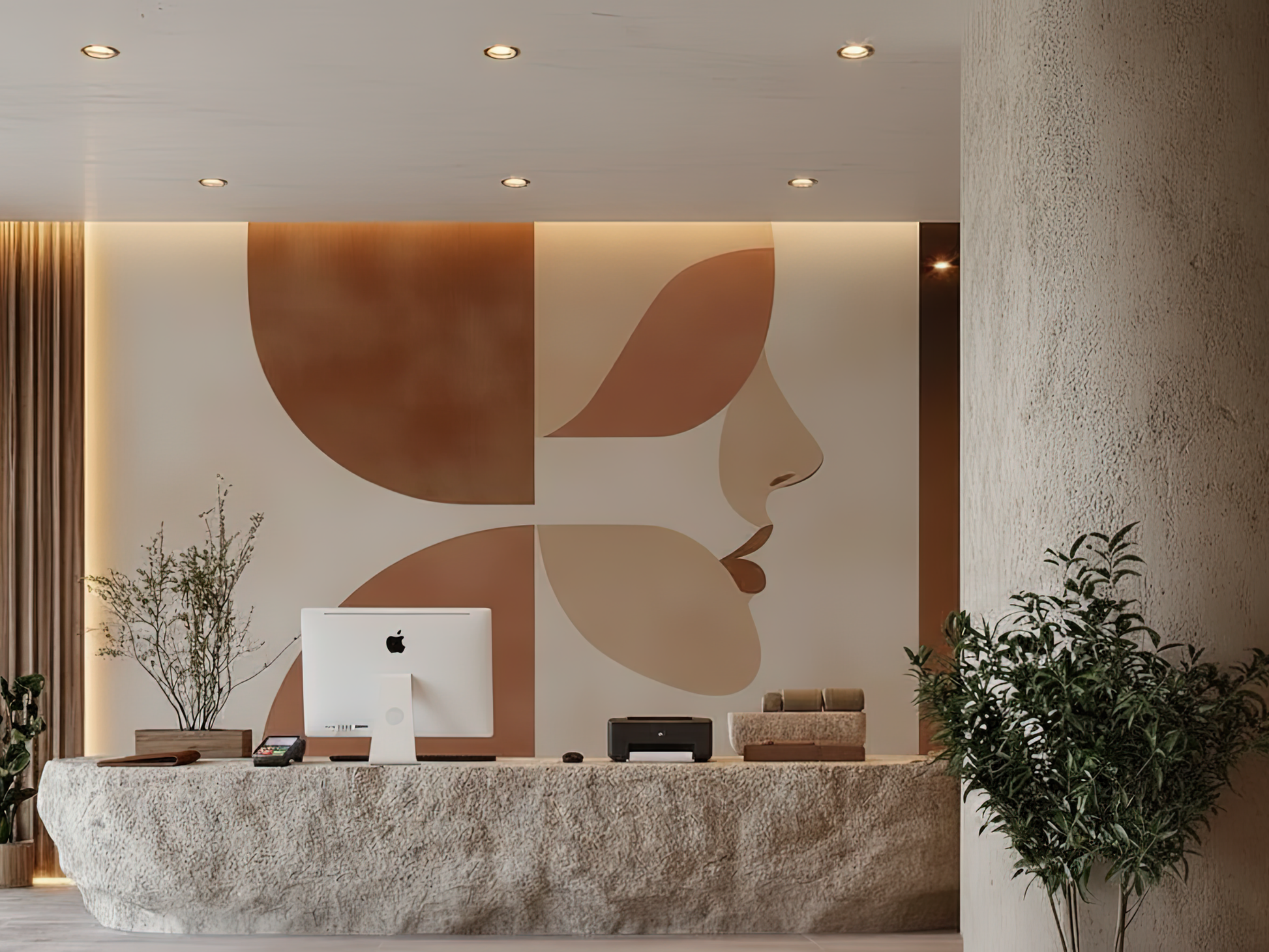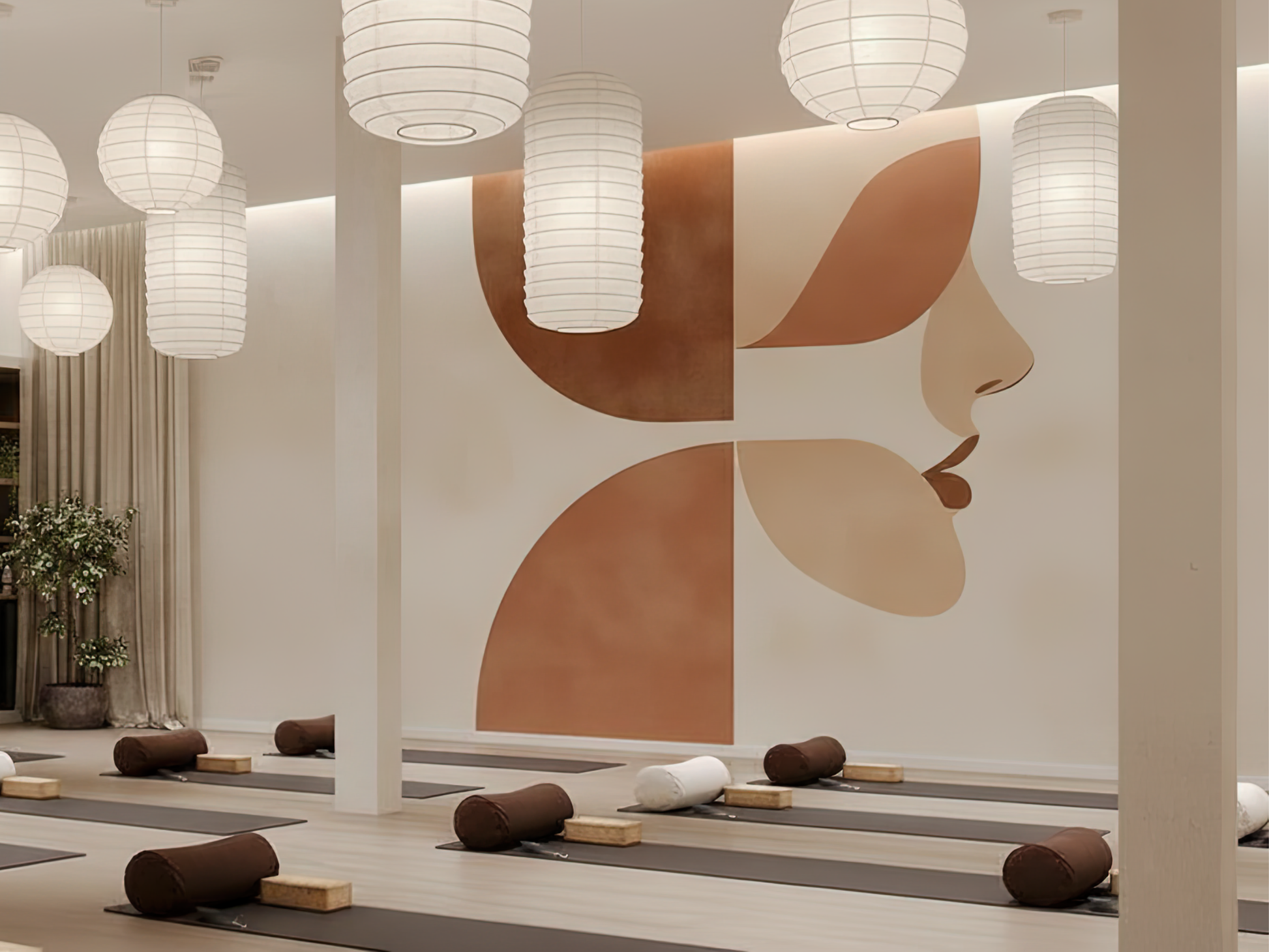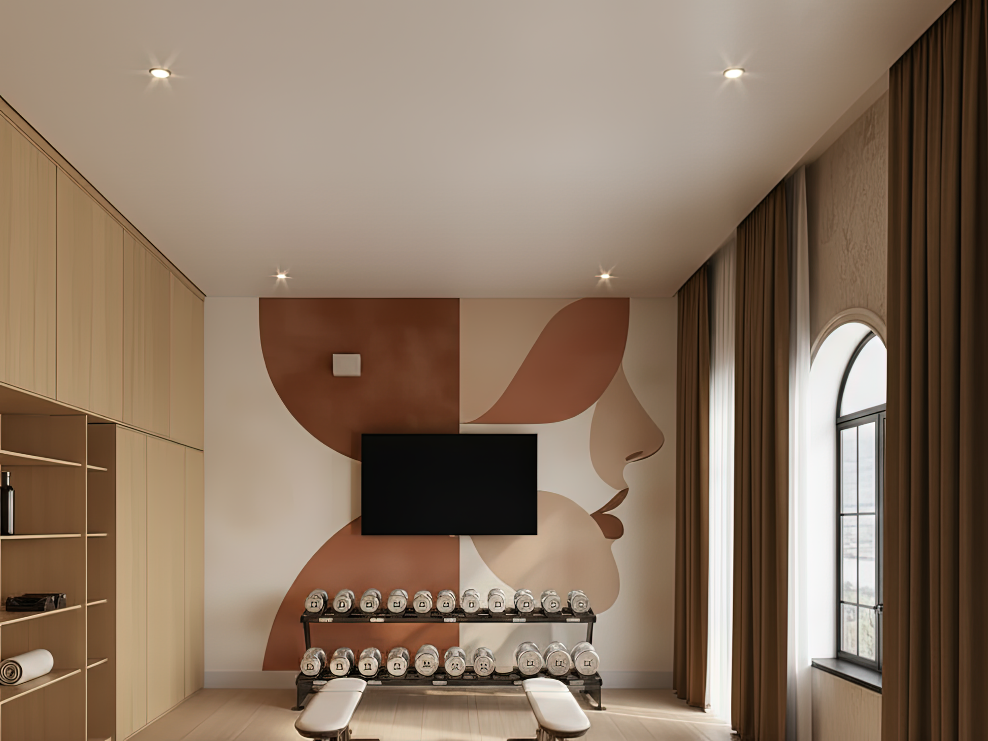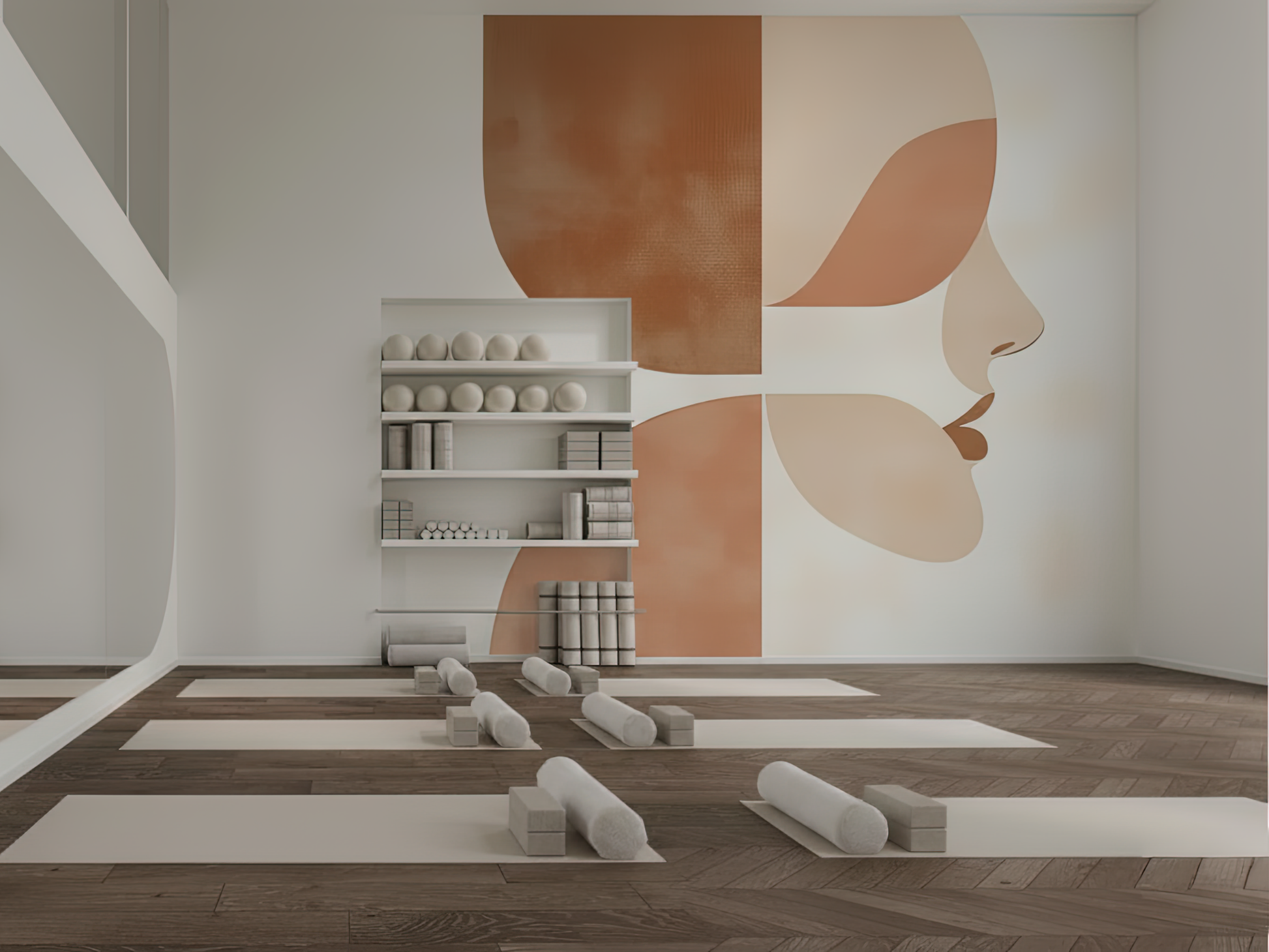 Formed from sculptural arcs and gentle contours, this Japandi wallpaper captures the abstract grace of a human profile in harmony with nature. Terracotta, clay, and soft beige tones layer like earth and skin, evoking both warmth and stillness. It is a mural of balance where form dissolves into feeling, and silence blossoms into presence.