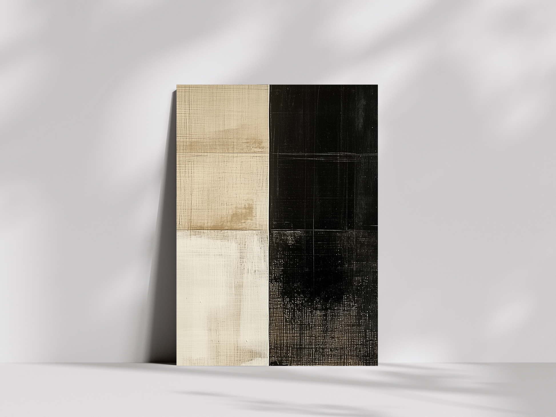 Monochrome Balance is a striking wooden wall art piece that masterfully explores the dynamic interplay between light and dark. The design features a bold vertical division, with one side rendered in soft, earthy beige tones and the other in deep, dramatic black. This contrast creates a powerful sense of equilibrium, as the two halves complement and balance each other, evoking a feeling of harmony and serenity. The natural grain of the birch wood subtly emerges through the contrasting shades, grounding the design in its organic origins and reinforcing its connection to the natural world.