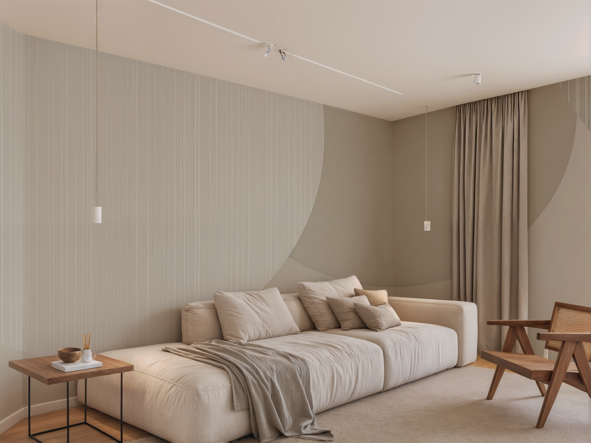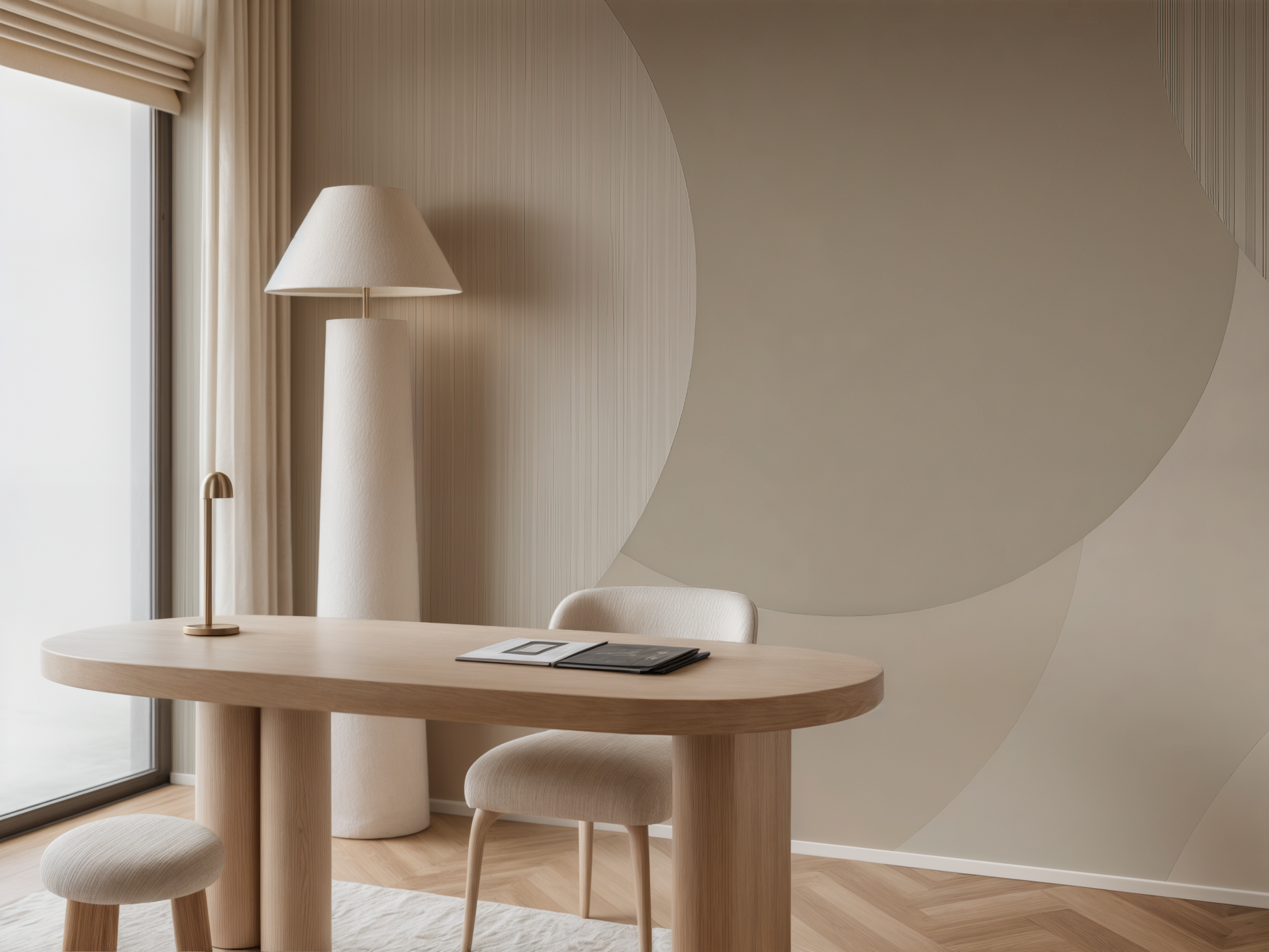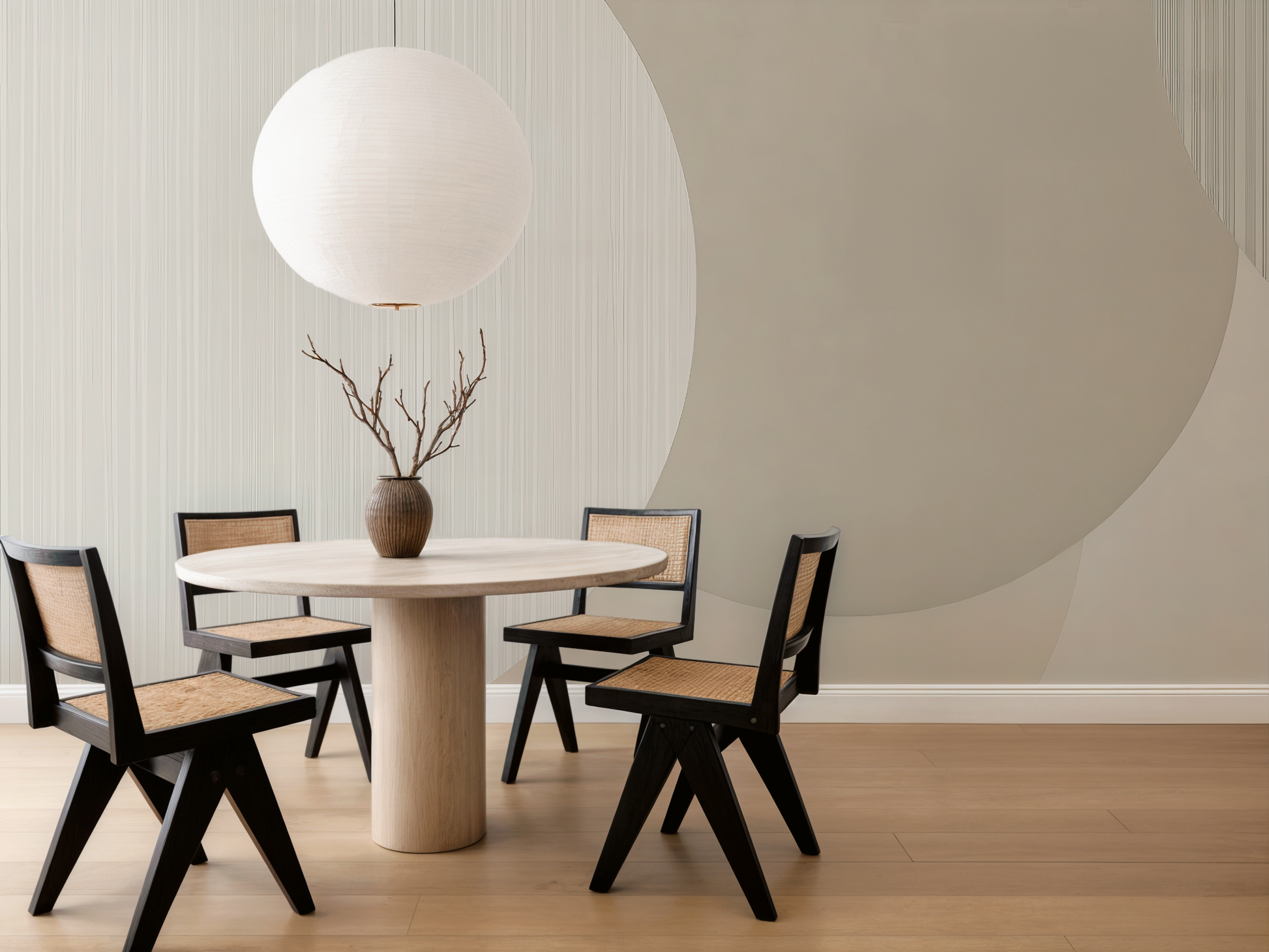 Inspired by the delicate layering of scent, air, and shadow, this Japandi wallpaper blends translucent shapes with graceful vertical textures. A whisper-light composition that evokes calm, clarity, and gentle flow. A space to exhale. A space to be.