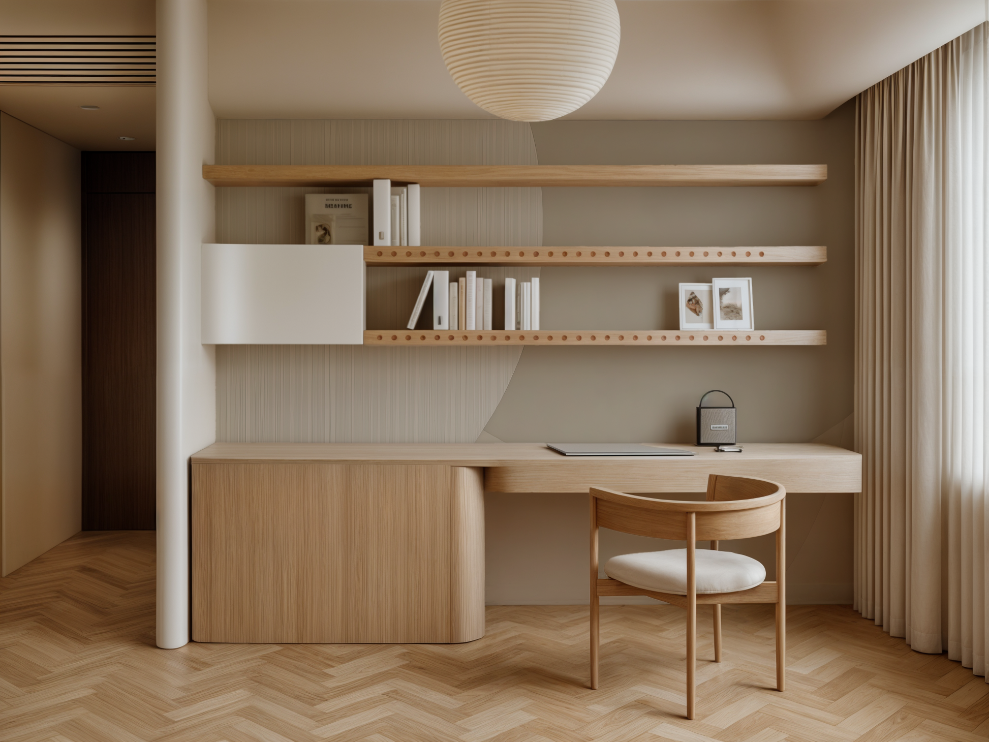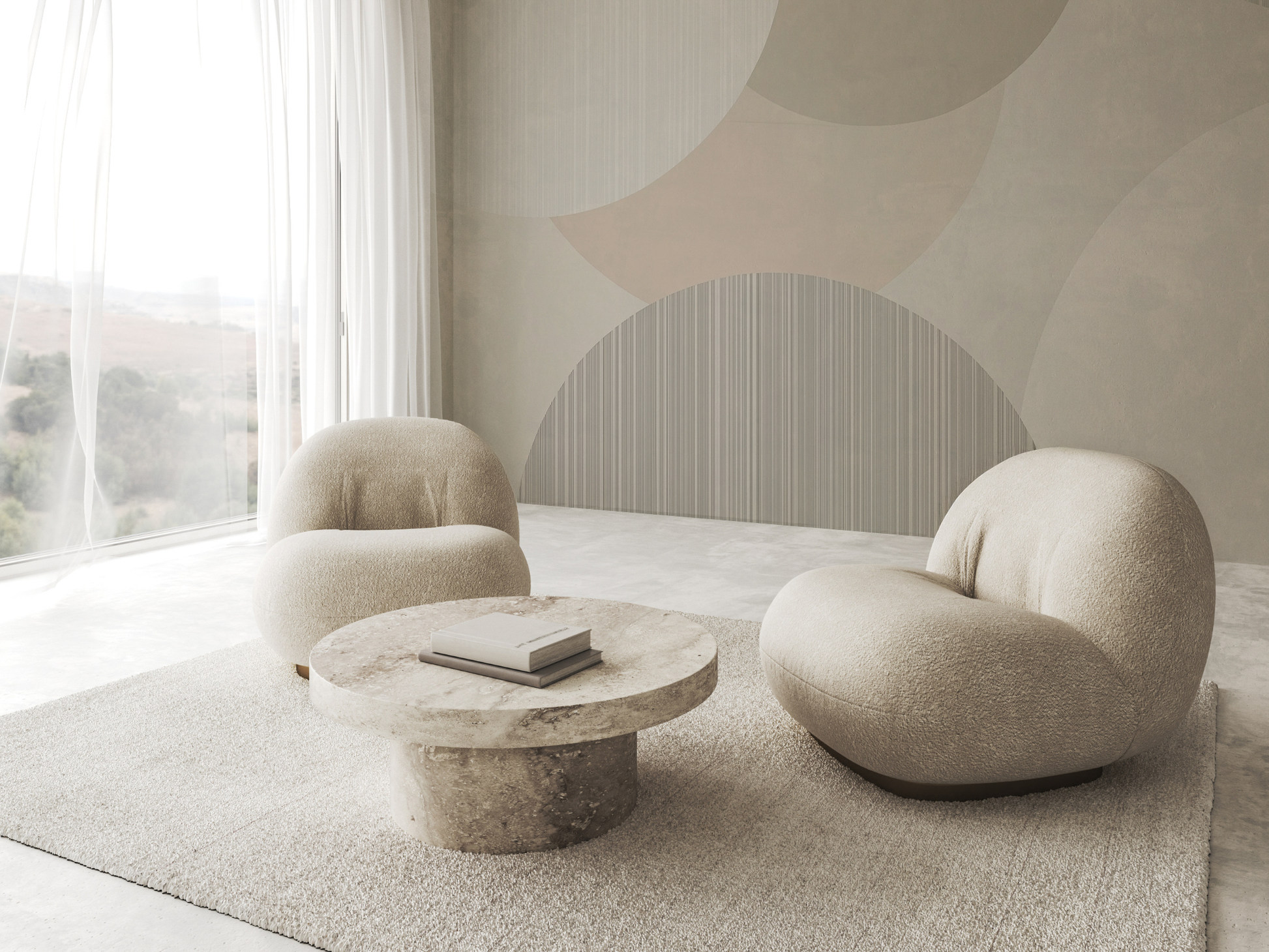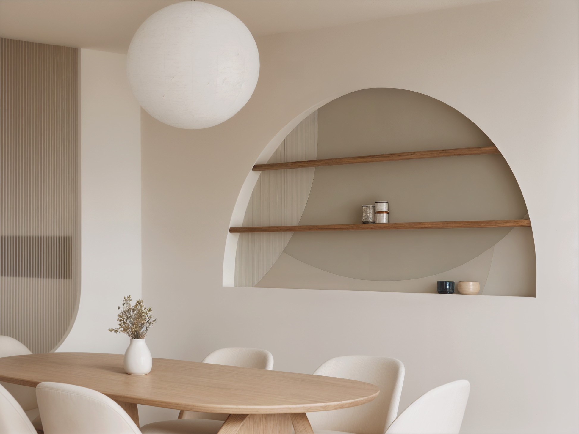 Inspired by the delicate layering of scent, air, and shadow, this Japandi wallpaper blends translucent shapes with graceful vertical textures. A whisper-light composition that evokes calm, clarity, and gentle flow. A space to exhale. A space to be.