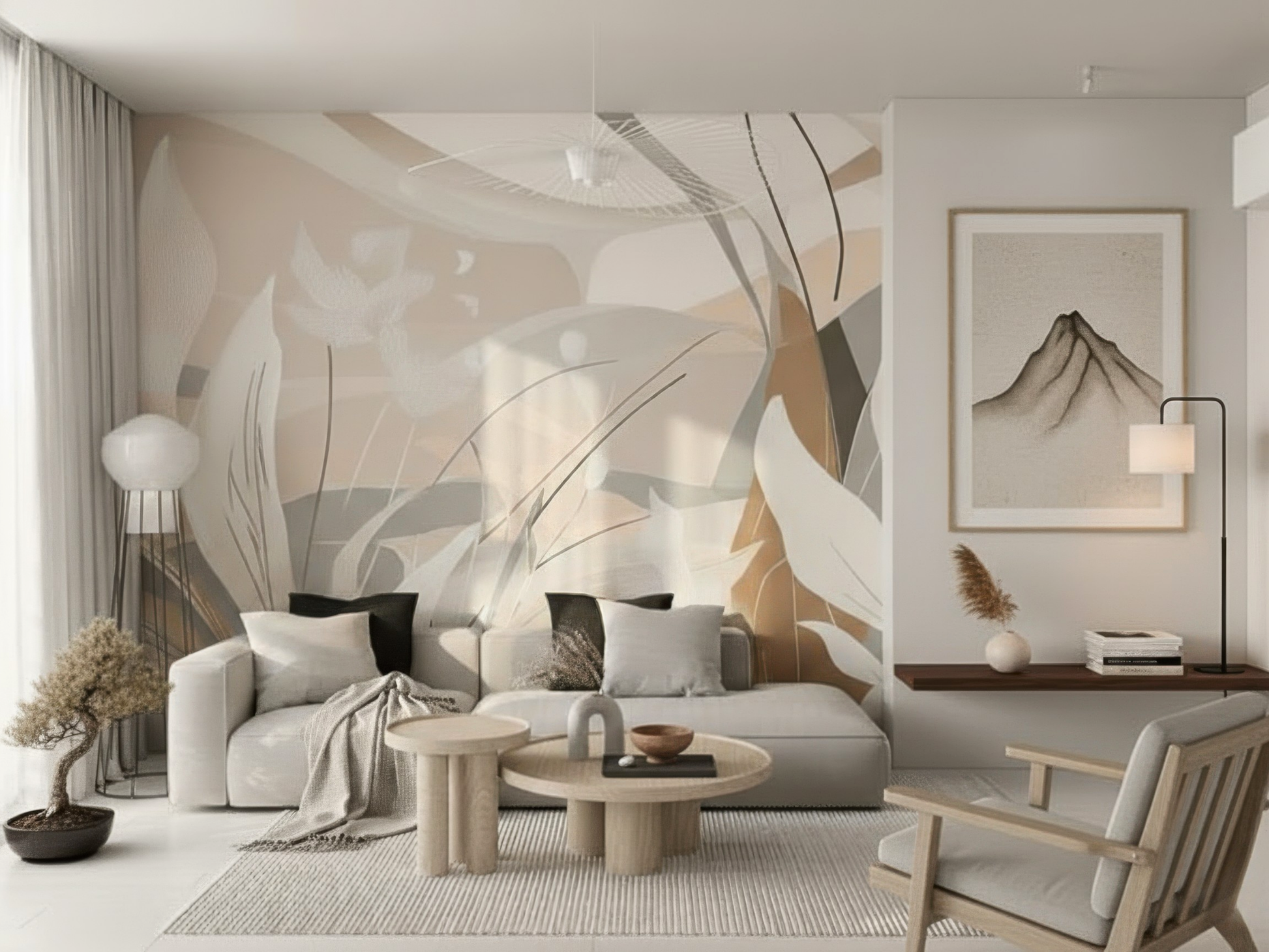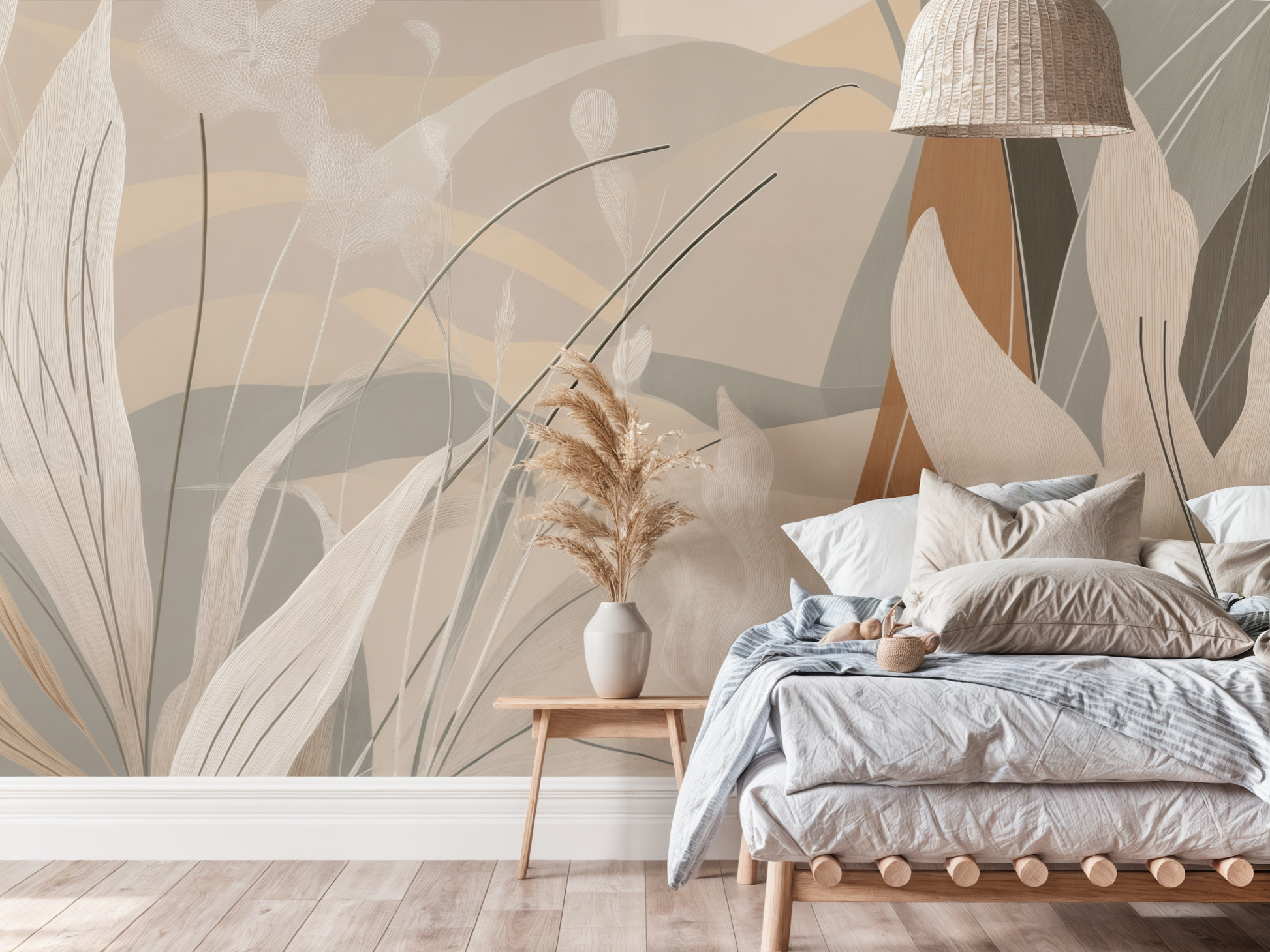Inspired by fleeting sunbeams dancing through forest canopies, this Japandi wallpaper captures the gentle harmony between shadow and glow. Delicate lines and flowing layers invite a quiet, dreamlike rhythm into your space. A space to breathe, a space to be.