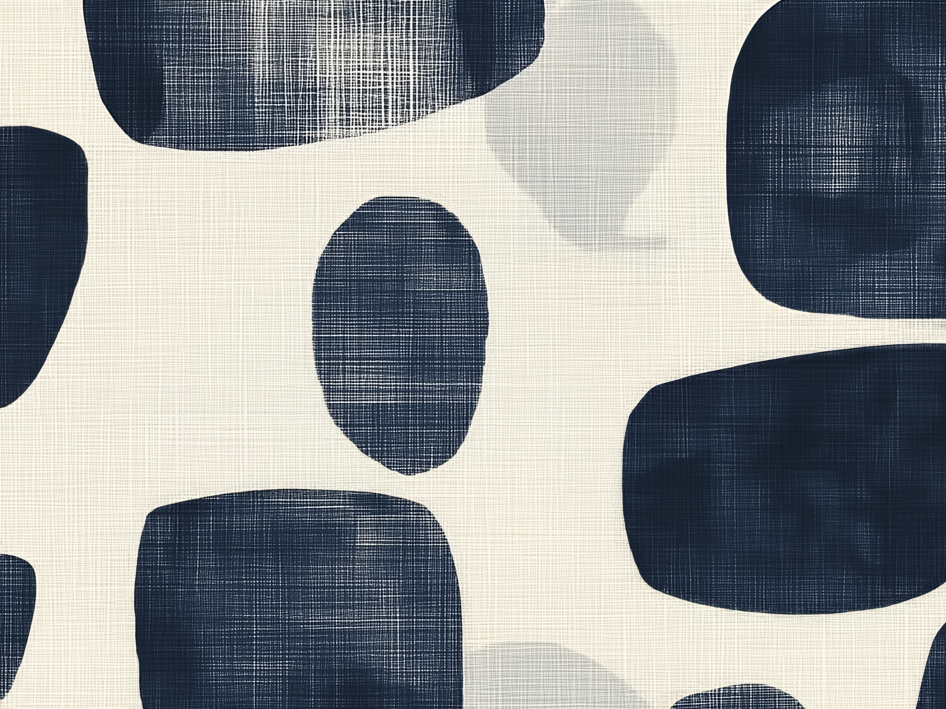 Inspired by river stones and traditional indigo dyeing, this Japandi wallpaper blends hand-drawn organic forms with textured navy tones. A balanced play of shadow and light that evokes stillness and depth. A space to anchor. A space to be.