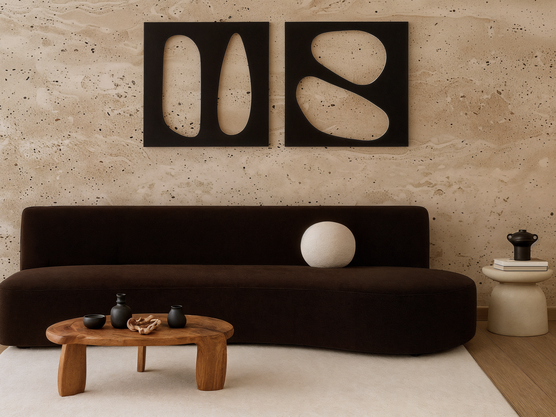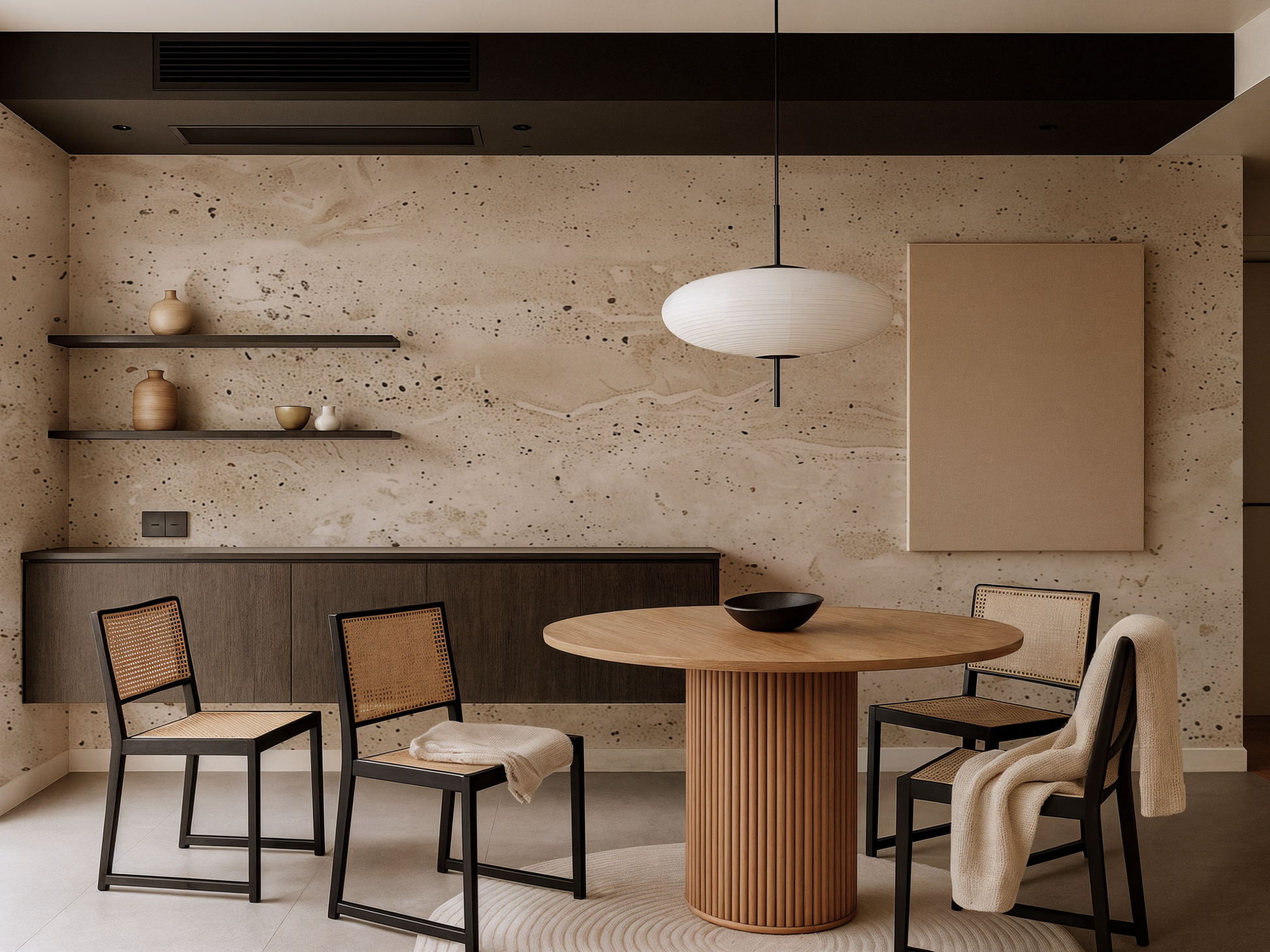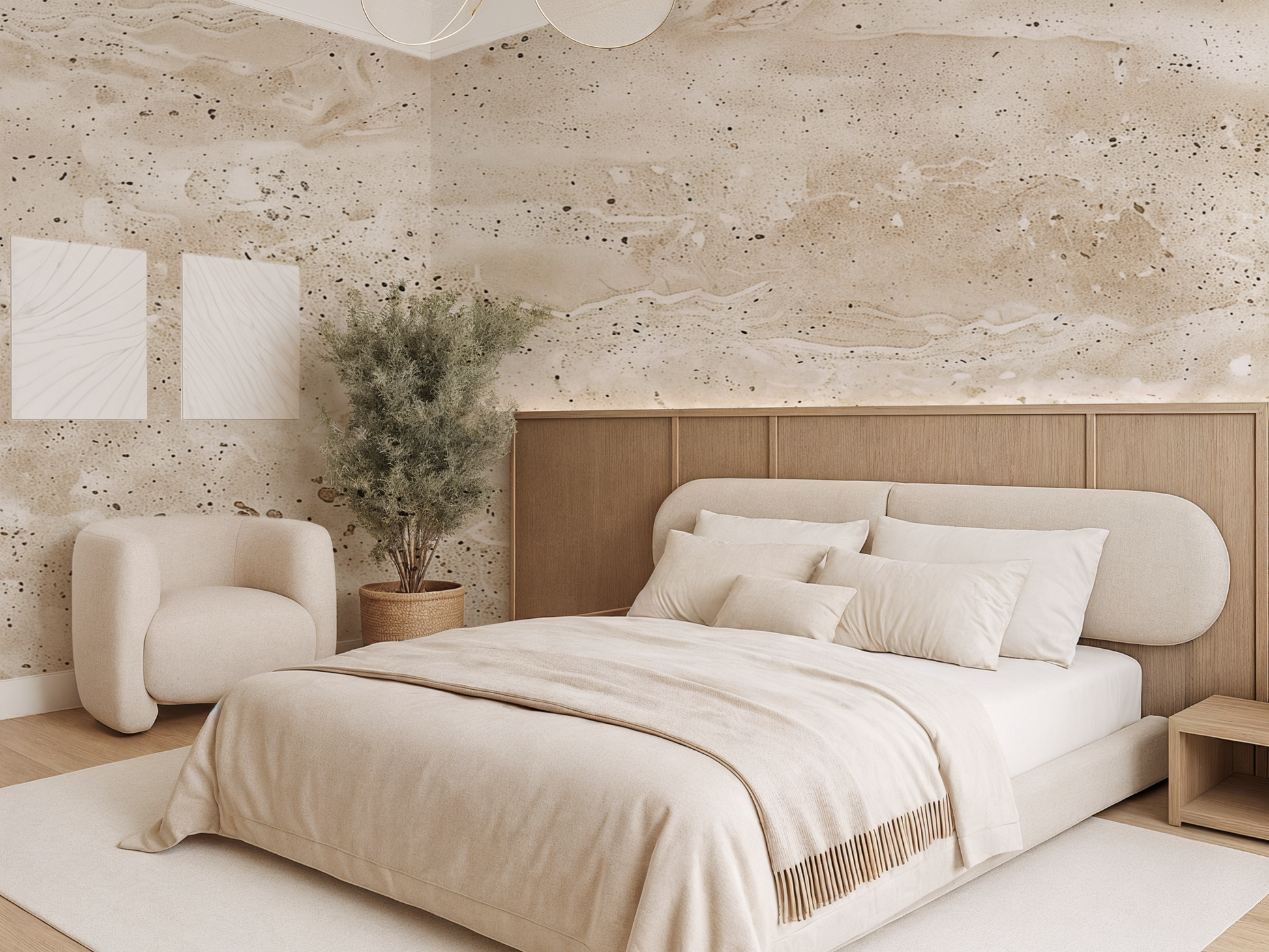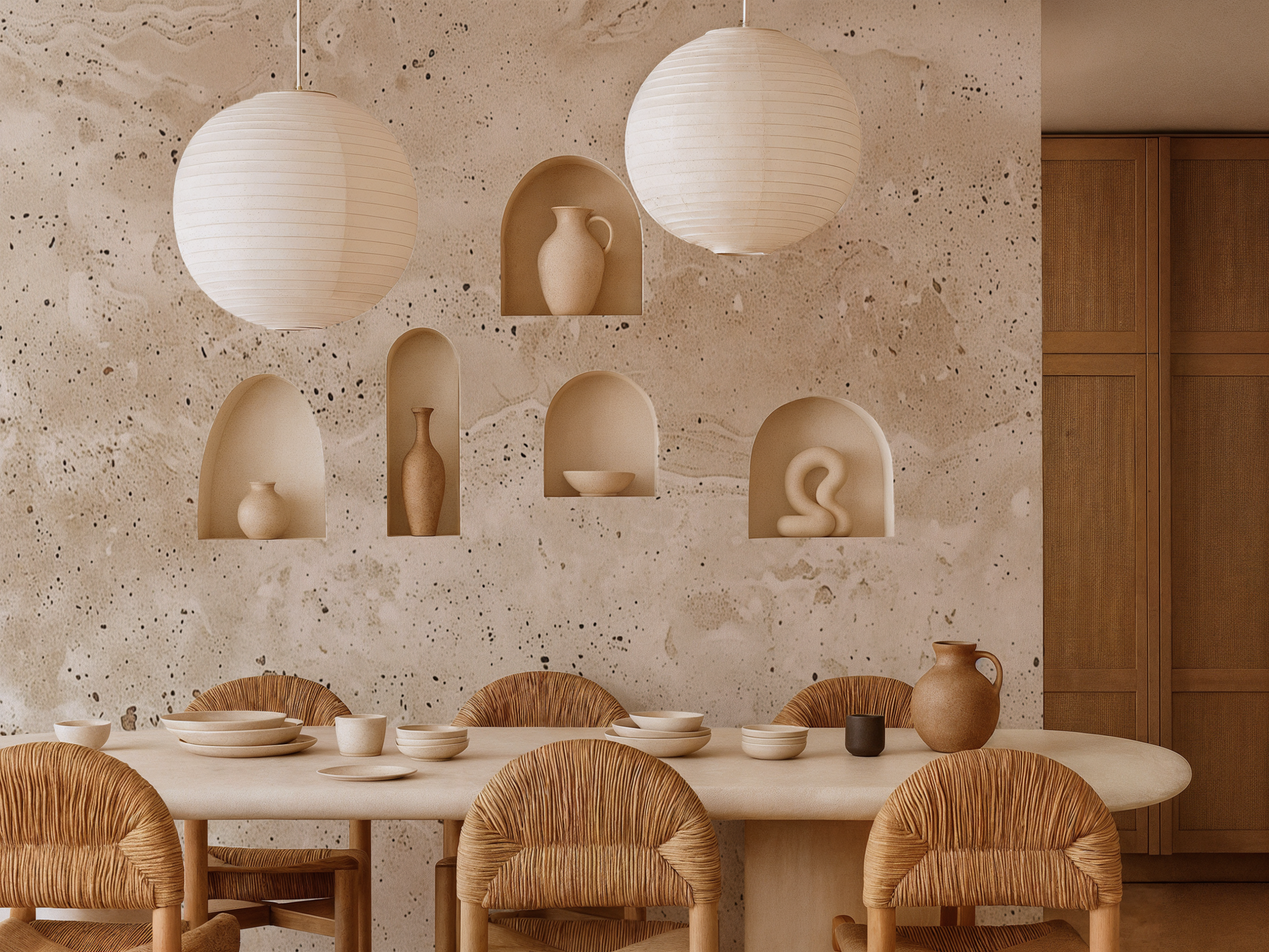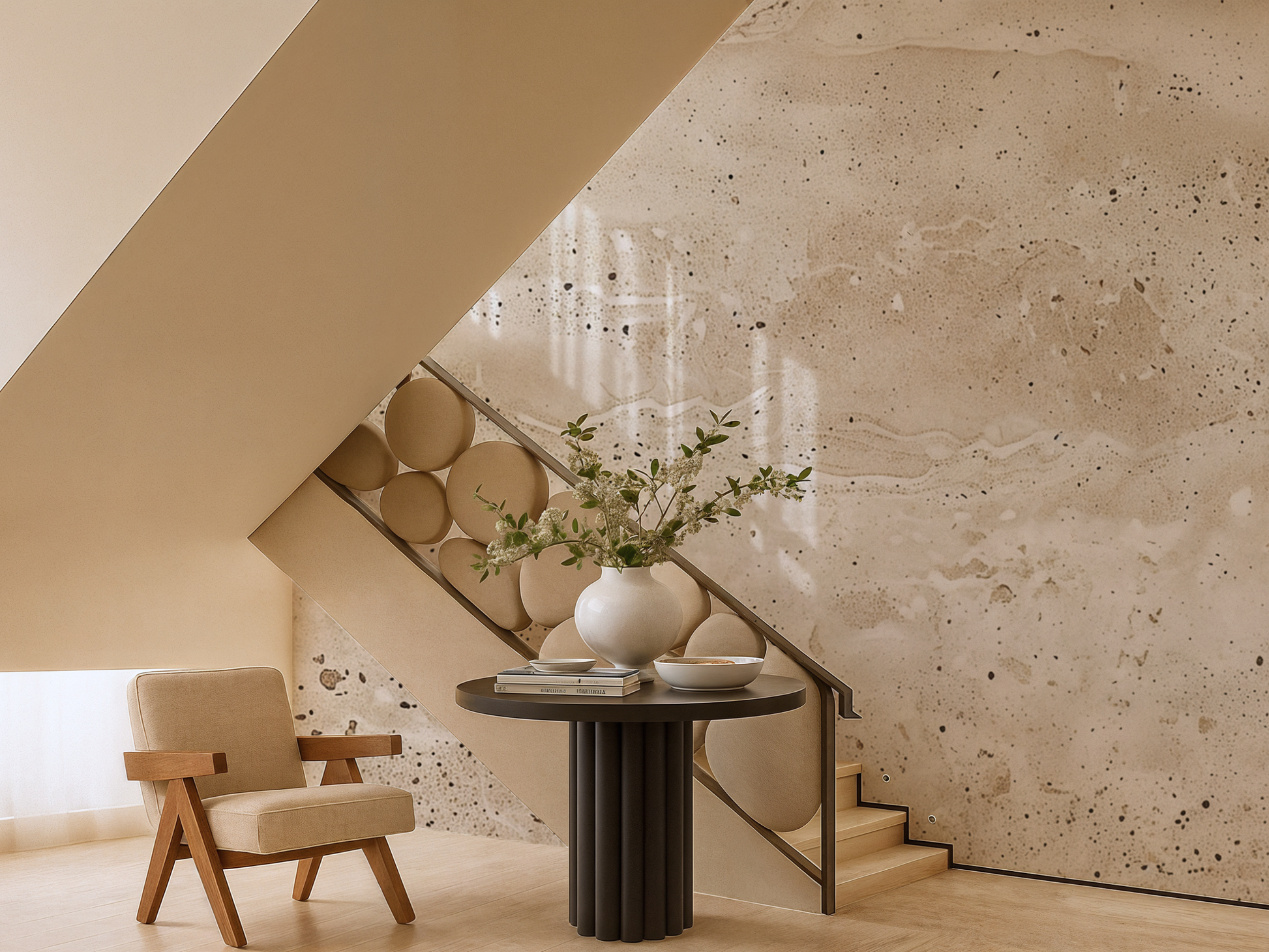 Inspired by earth-worn stone and the subtle movement of water, this Japandi wallpaper flows with organic texture and grounded warmth. An ode to imperfection, depth, and natural stillness. A space to ground. A space to be.