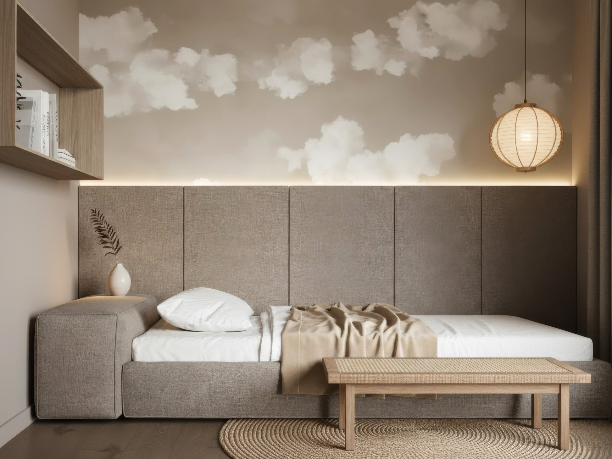 Inspired by the gentle hush of clouded skies, this Japandi wallpaper captures the peacefulness of slow moments and open air. Its airy textures and muted tones bring a feeling of lightness, creating a sanctuary above the everyday. A space to breathe, a space to be.