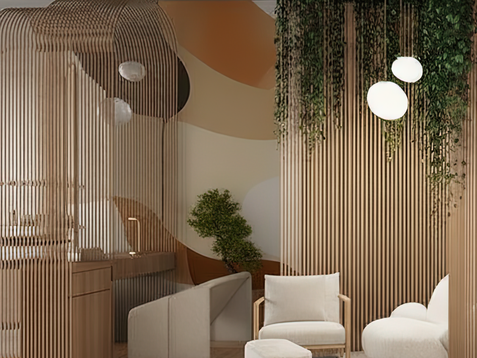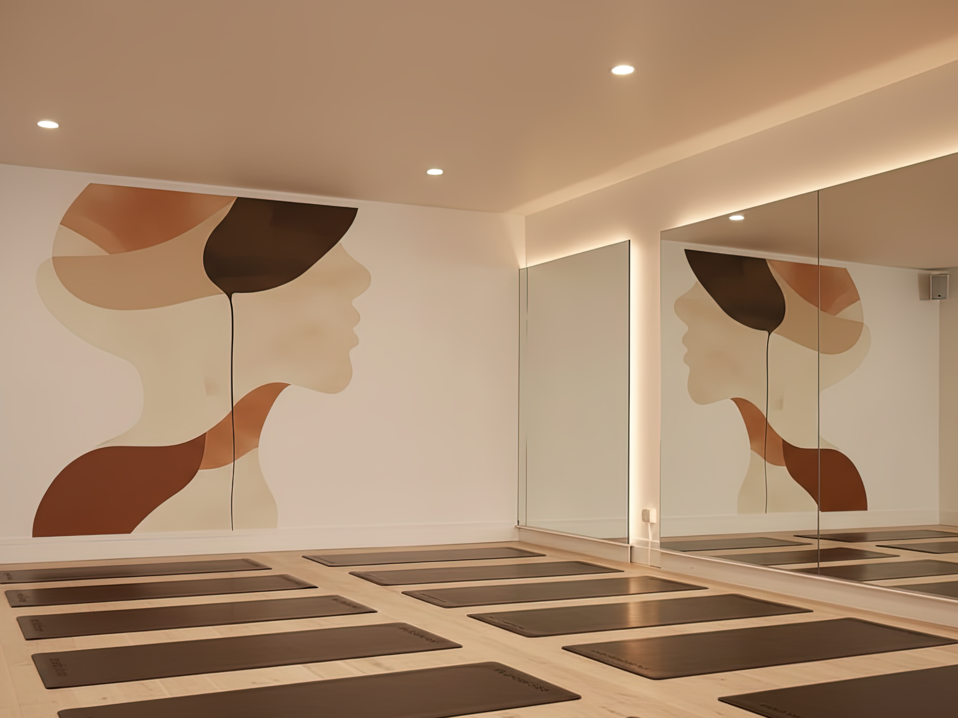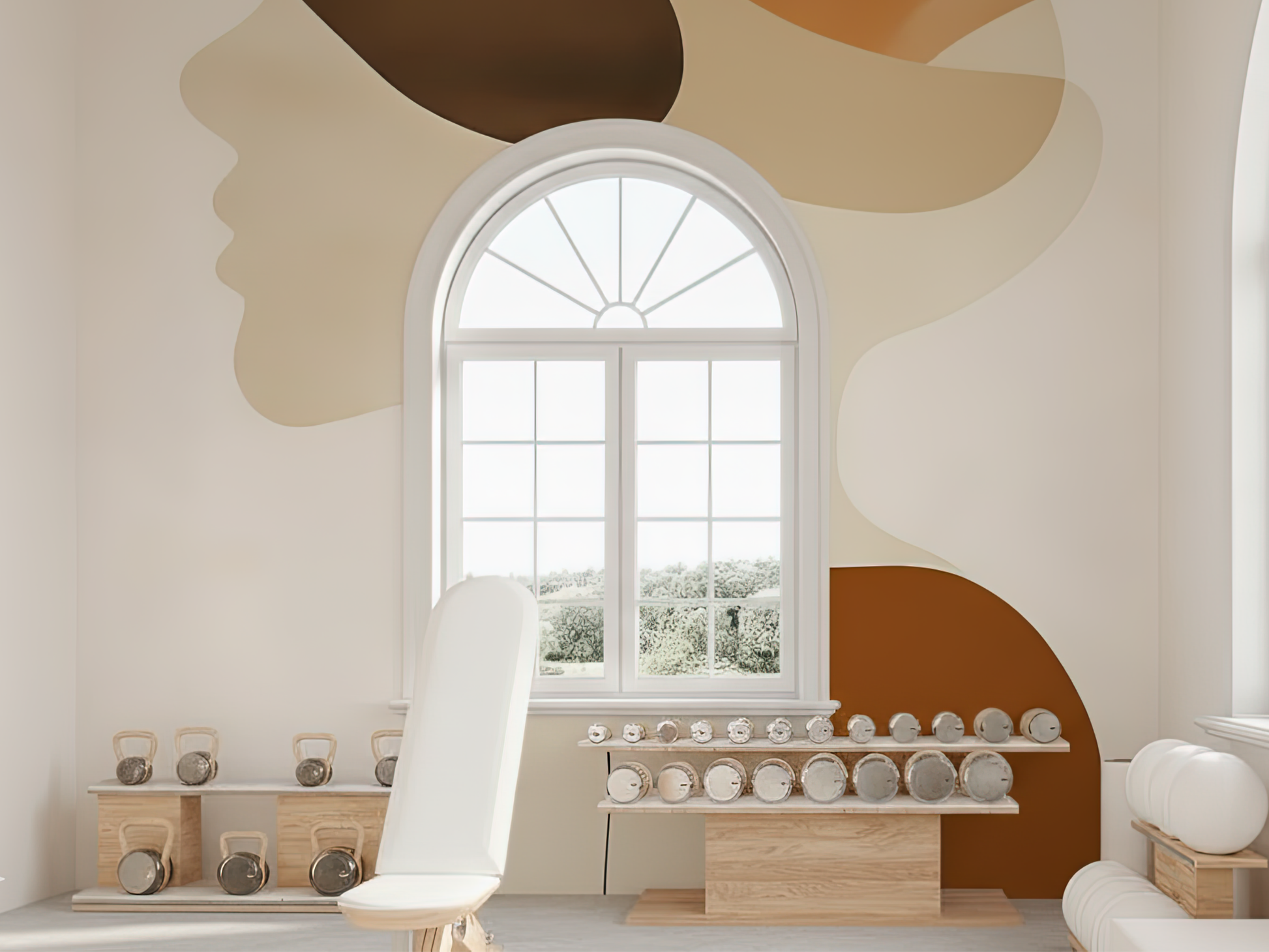 Inspired by the flowing elegance of feminine strength and the serenity of still profiles, this Japandi wallpaper layers soft curves with warm, earthen tones. A quiet portrait of balance, beauty, and calm presence. A space to honour. A space to be.