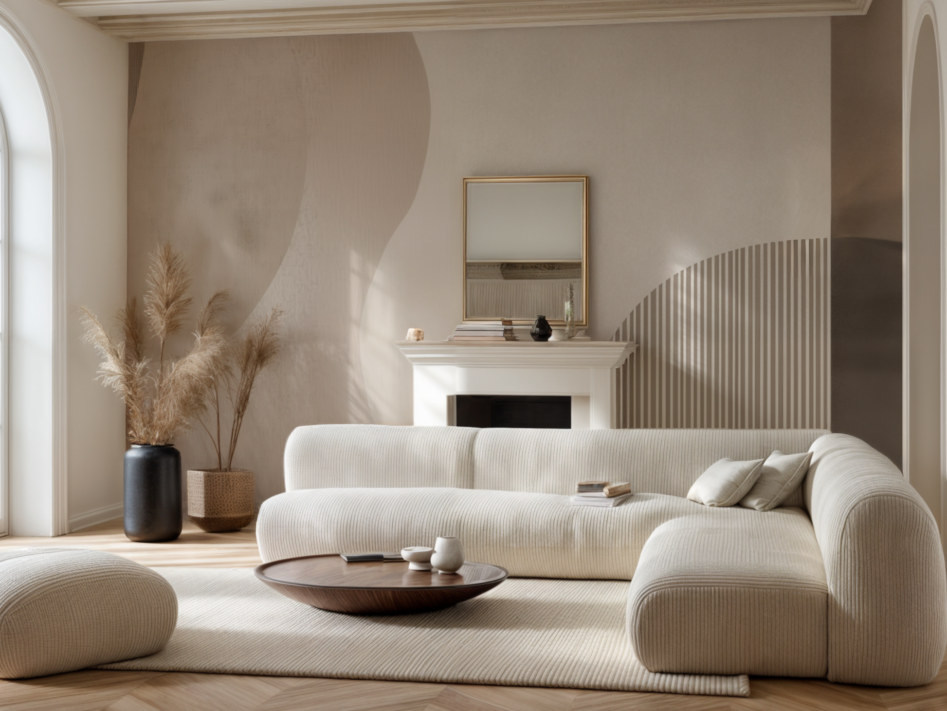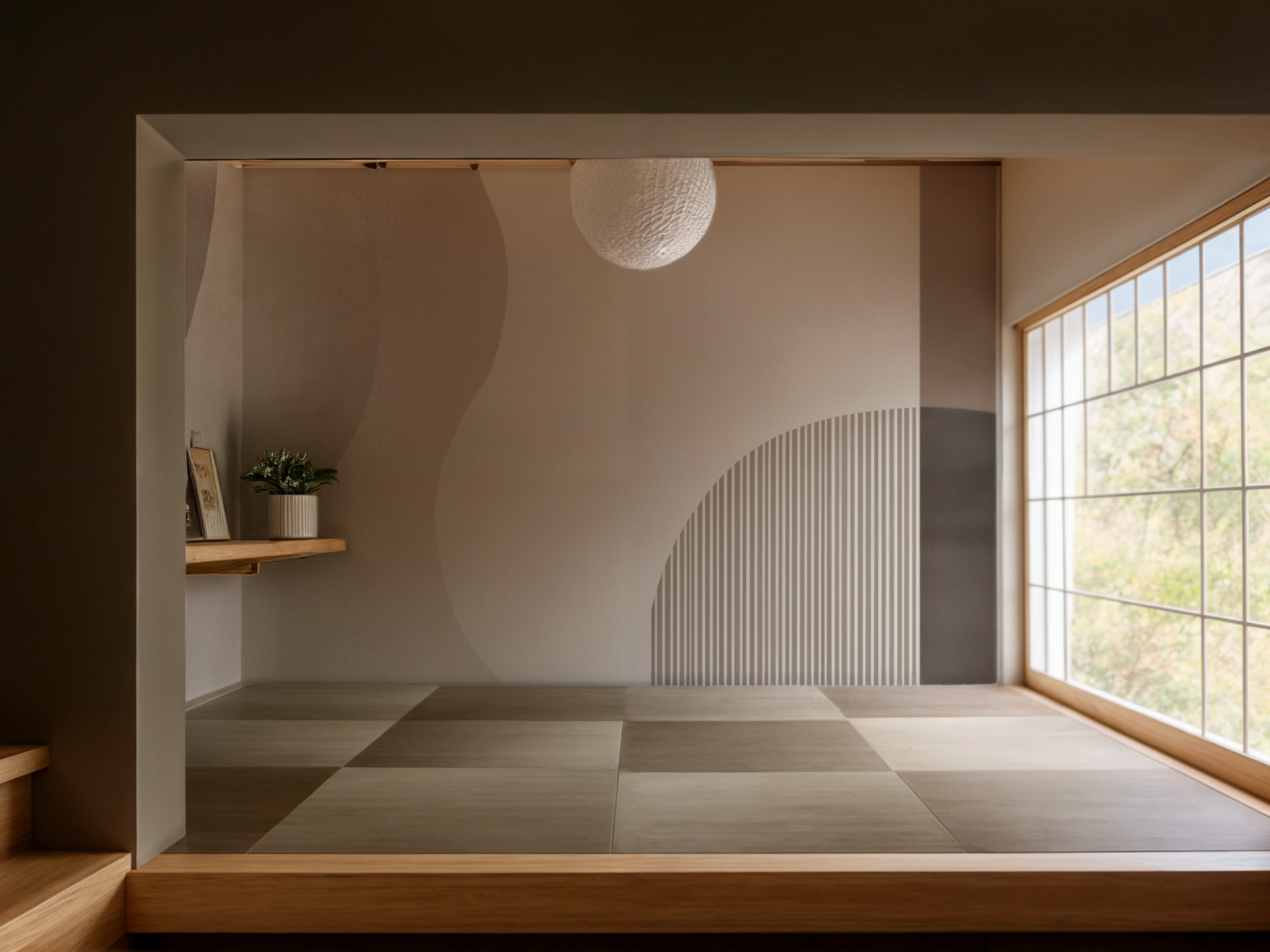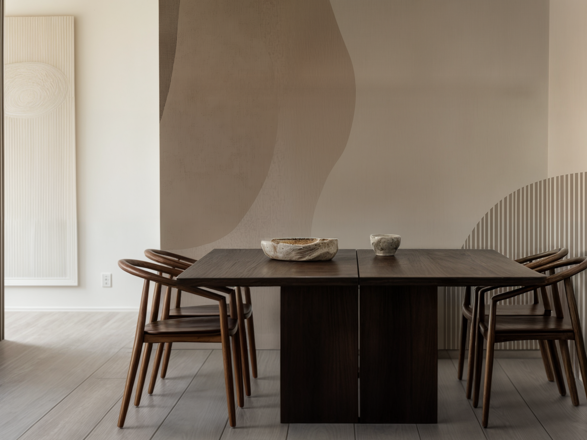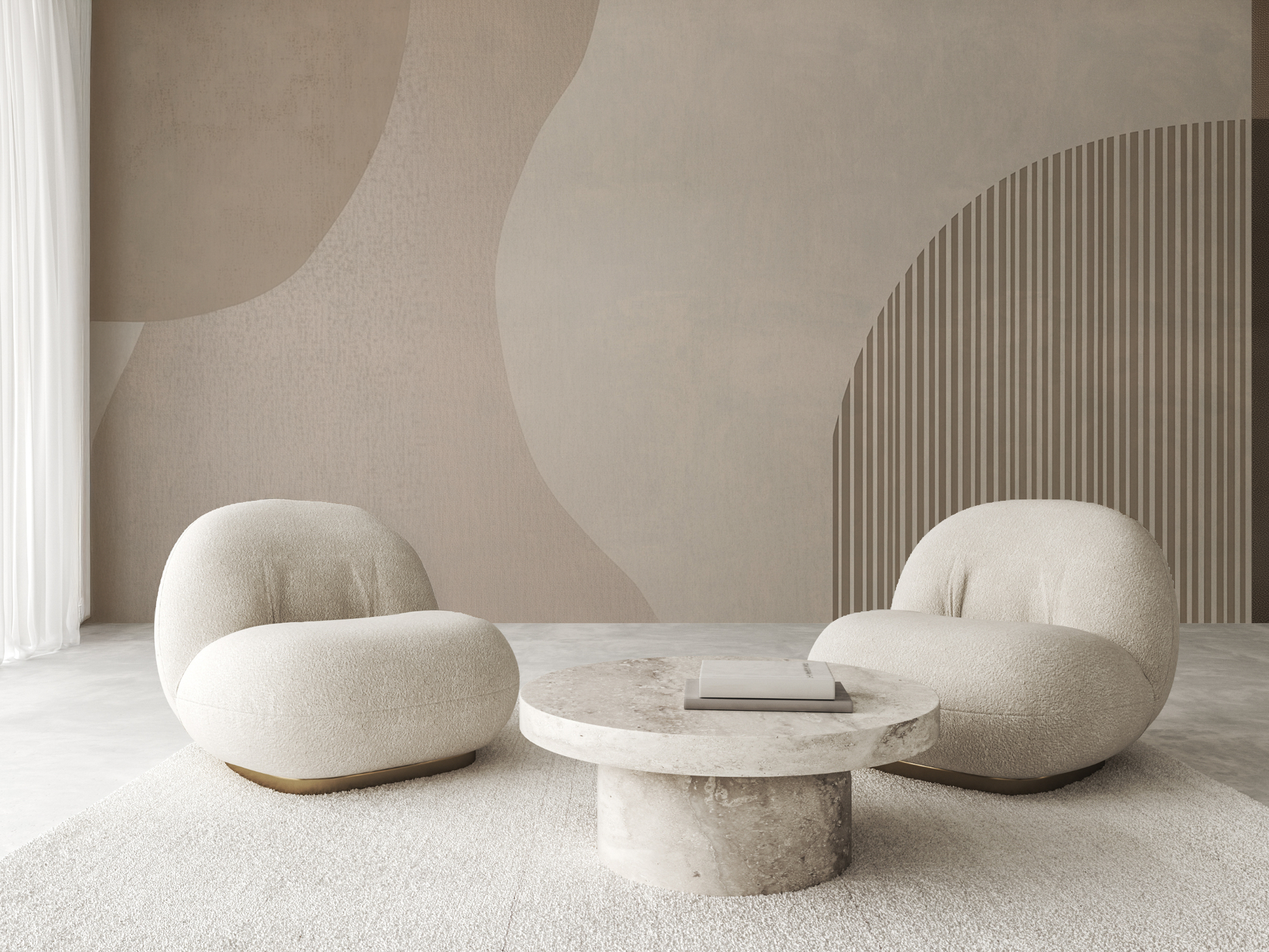 Inspired by the soft flow of carved stone and the subtle shadows of shoji screens, this Japandi wallpaper embraces the beauty of gentle motion and quiet form. A refined blend of curves and vertical rhythm creates a soothing backdrop. A space to flow, a space to be.