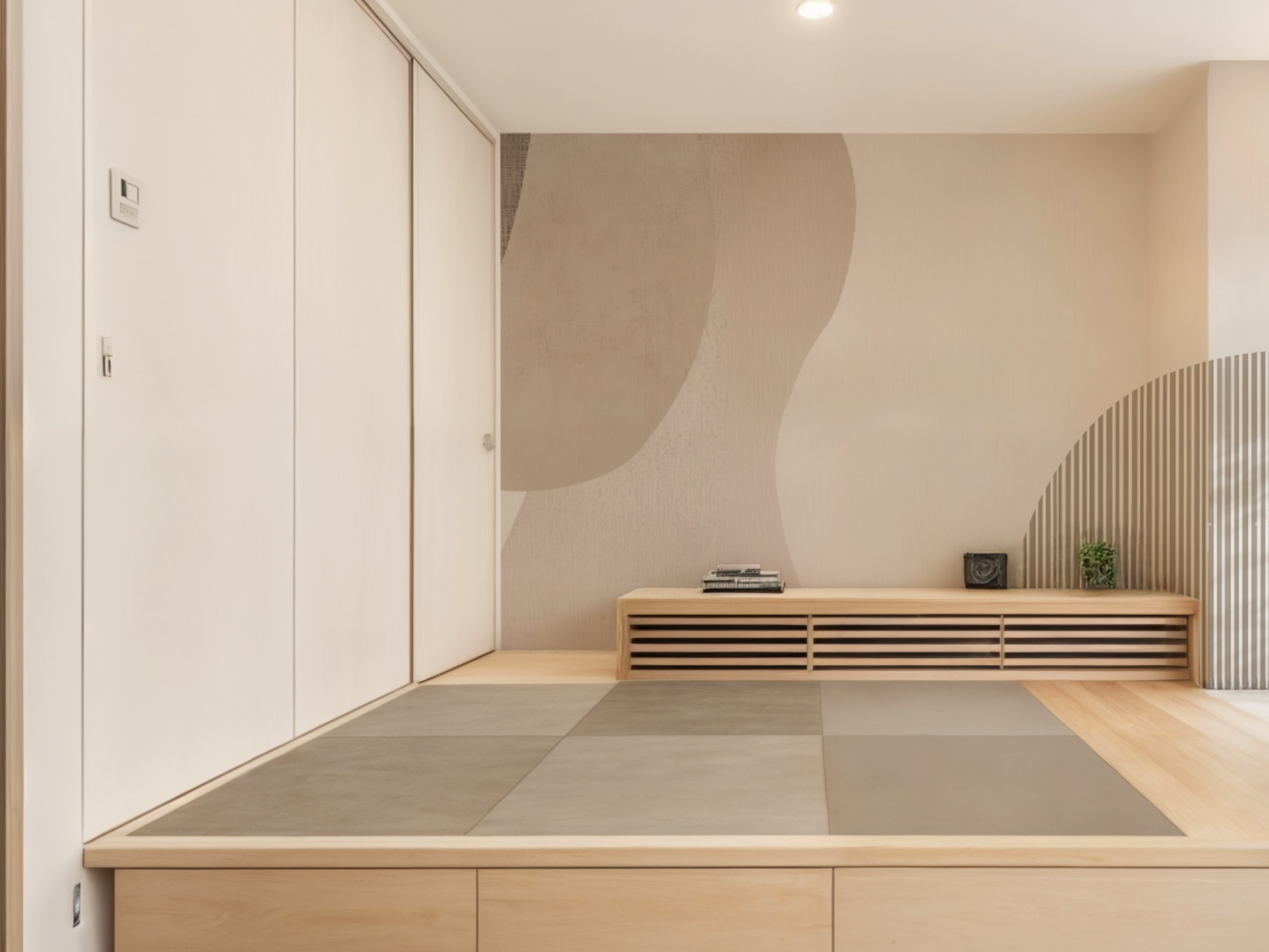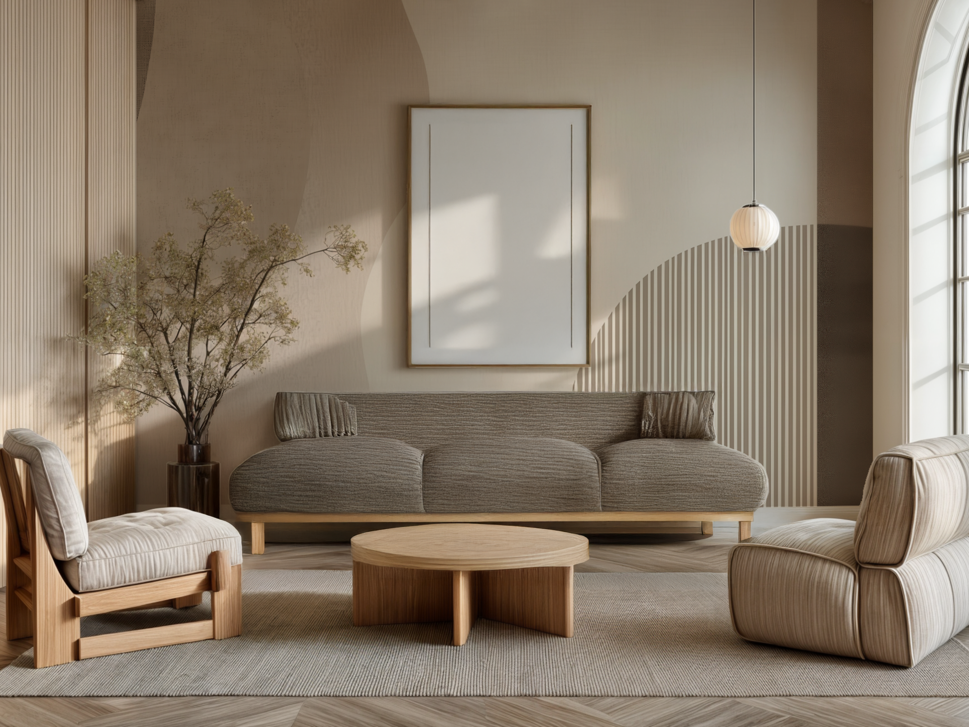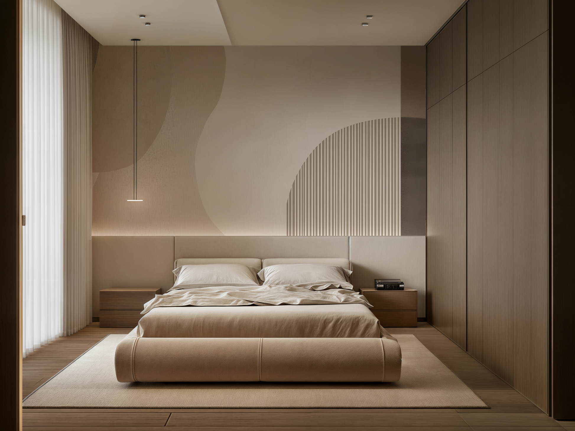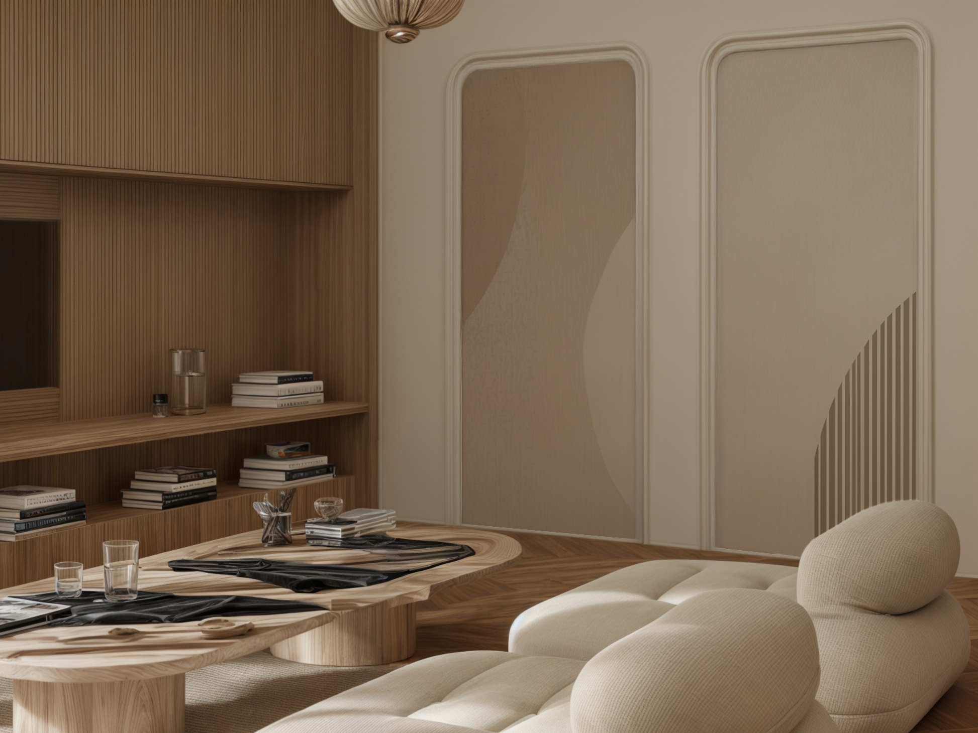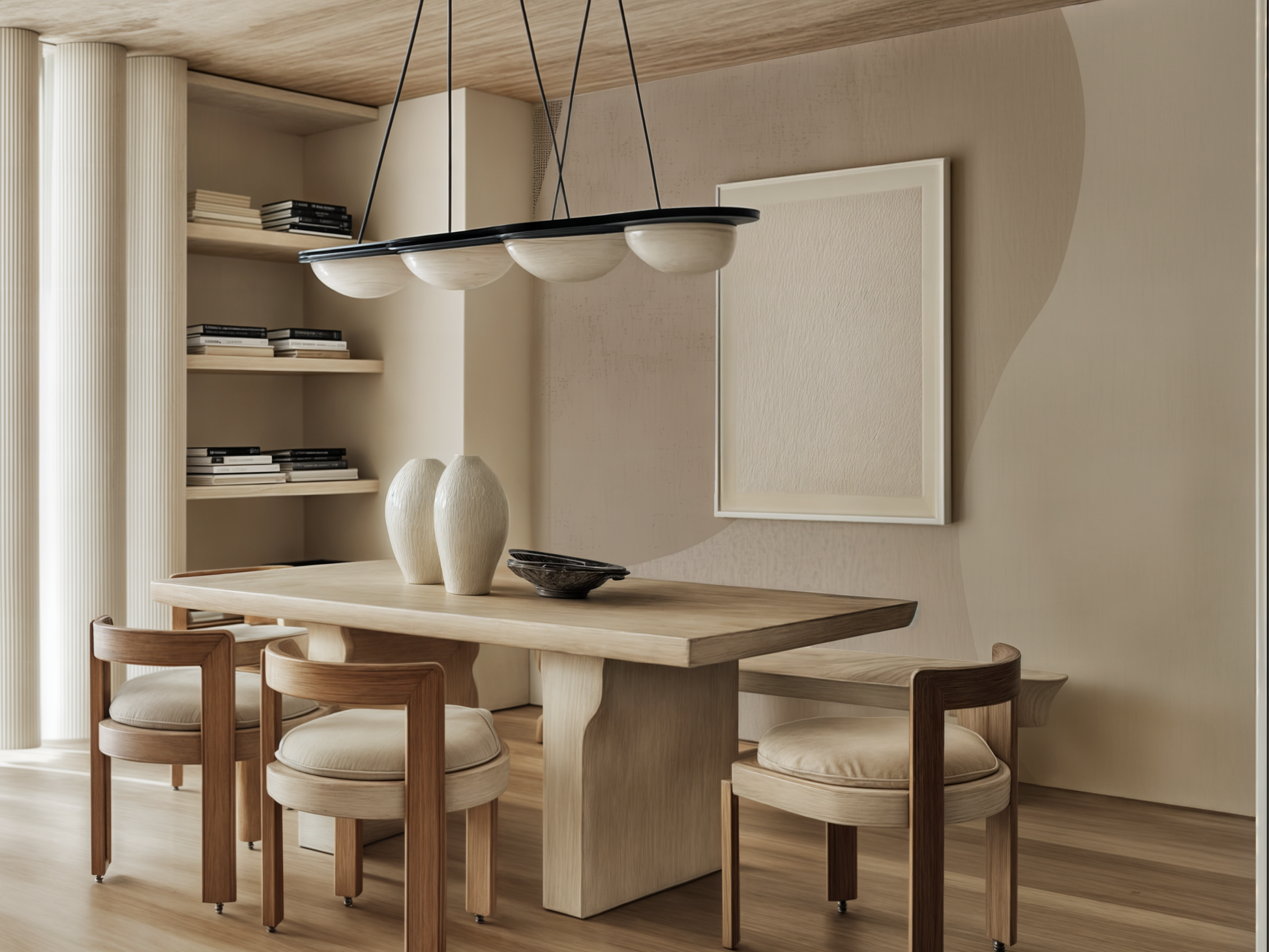 Inspired by the soft flow of carved stone and the subtle shadows of shoji screens, this Japandi wallpaper embraces the beauty of gentle motion and quiet form. A refined blend of curves and vertical rhythm creates a soothing backdrop. A space to flow, a space to be.
