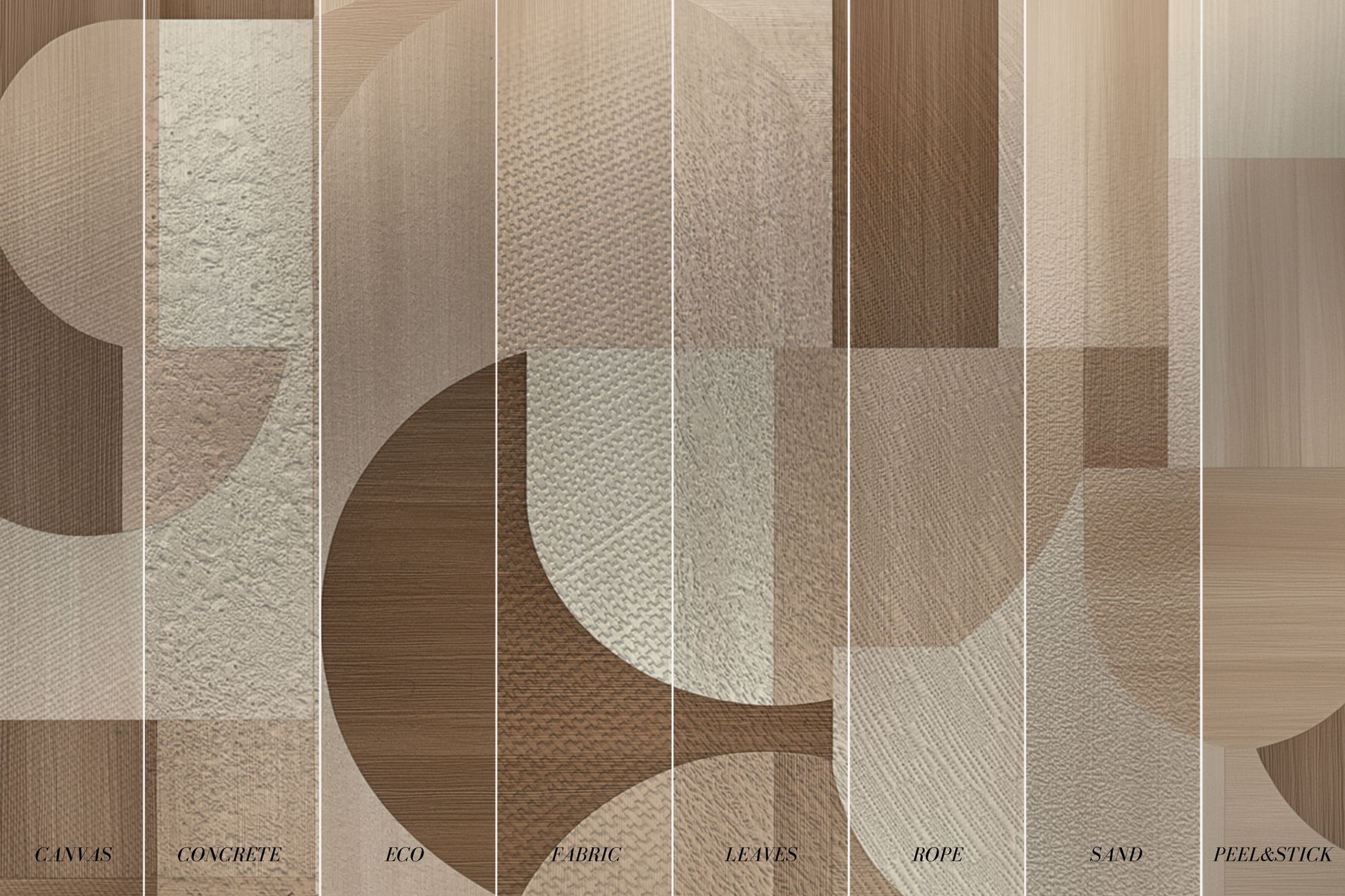 Inspired by the flowing rhythm of wood textures and geometric harmony, this Japandi wallpaper brings warmth and softness to structured spaces. A gentle dance of form and material. A space to breathe, a space to be.