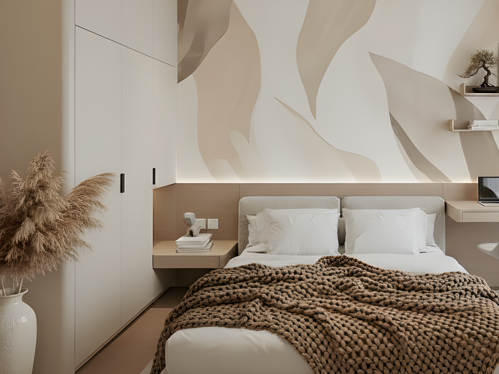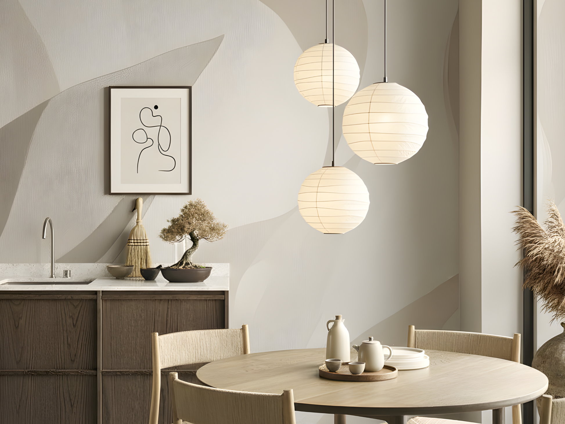Inspired by soft leaves swaying with the rhythm of coastal breezes, this Japandi wallpaper evokes movement within calm. A serene blend of nature’s grace and minimalist design. A space to breathe, a space to be.