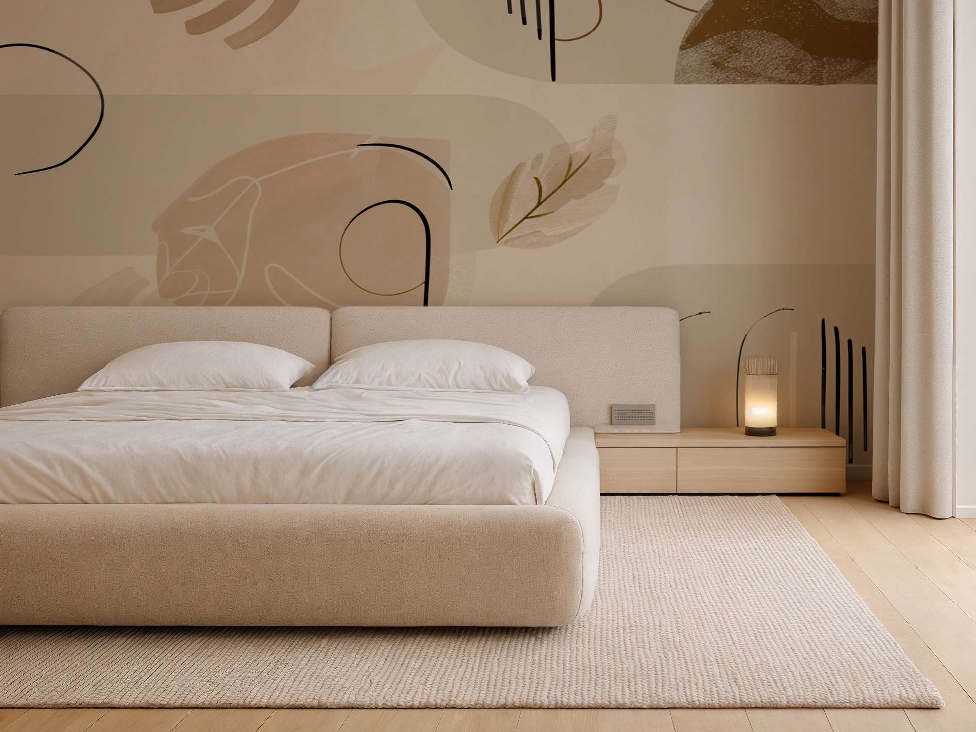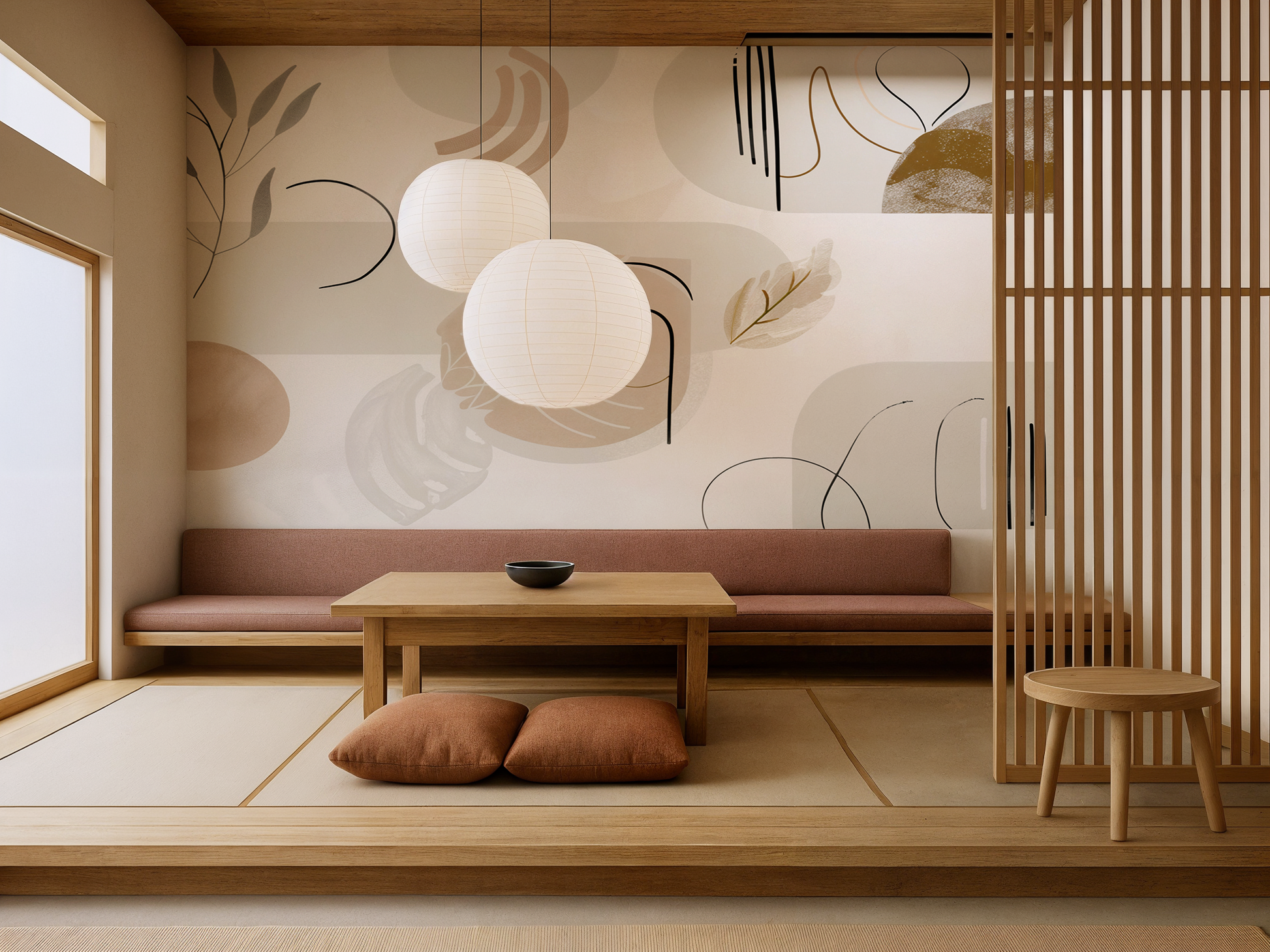 Inspired by the delicate dance of flowers in soft morning light, this Japandi wallpaper weaves organic forms with gentle lines and earthy tones. A floral whisper of peace and presence. A space to grow. A space to simply be.