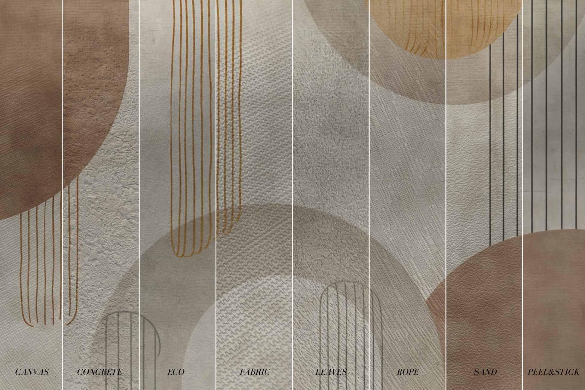 Inspired by the gentle rhythm of inner clarity and the flow of natural forms, this Japandi wallpaper combines curved geometry with soft linear textures. A meditative balance between movement and stillness. A space to awaken. A space to be.