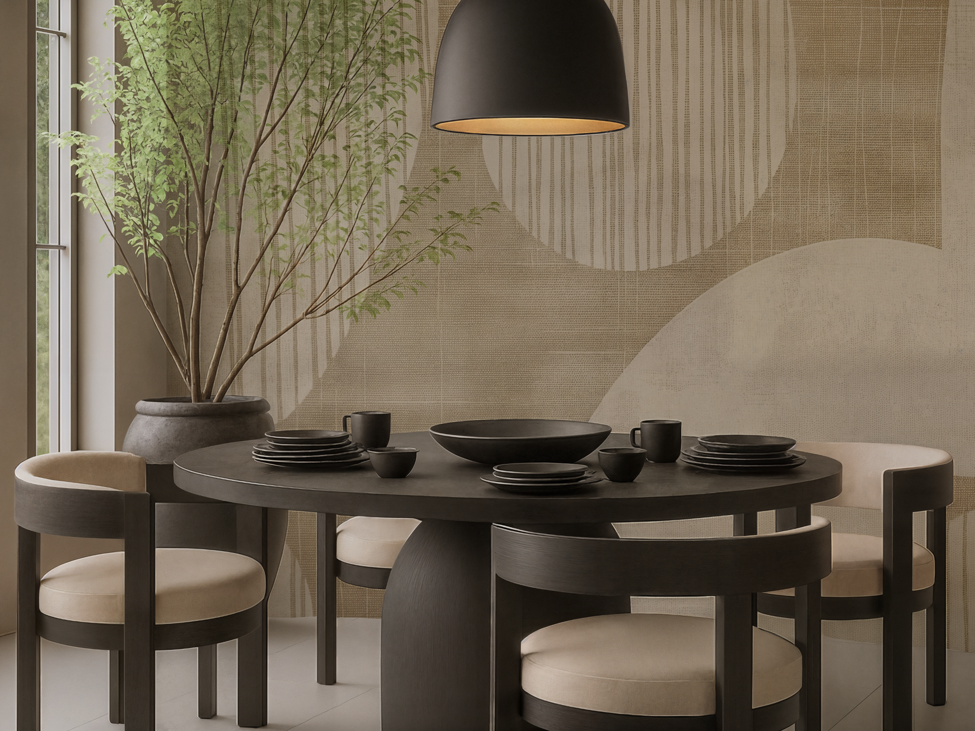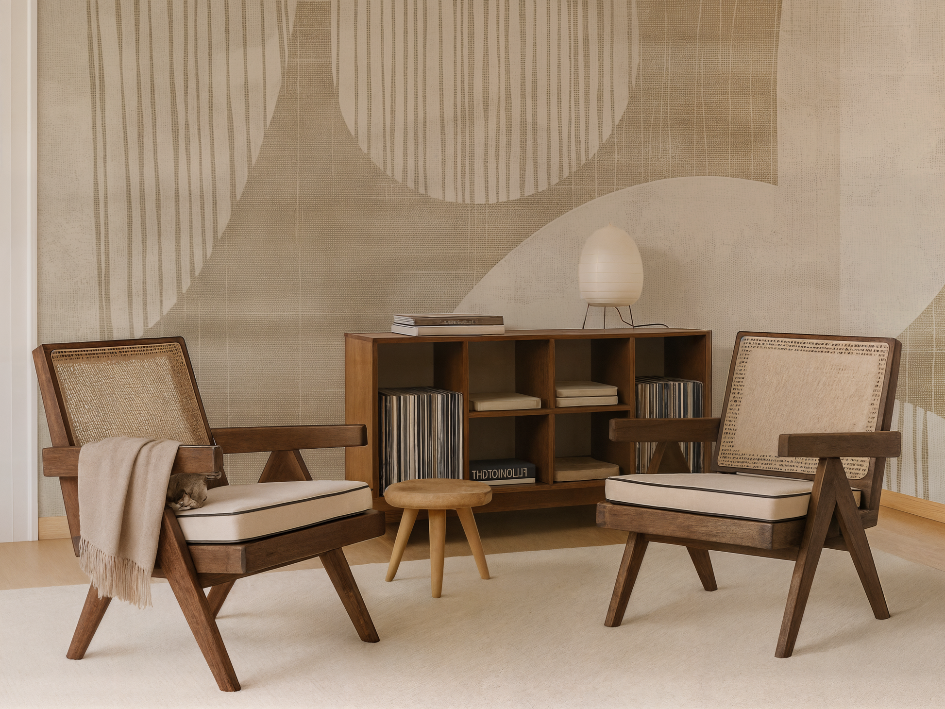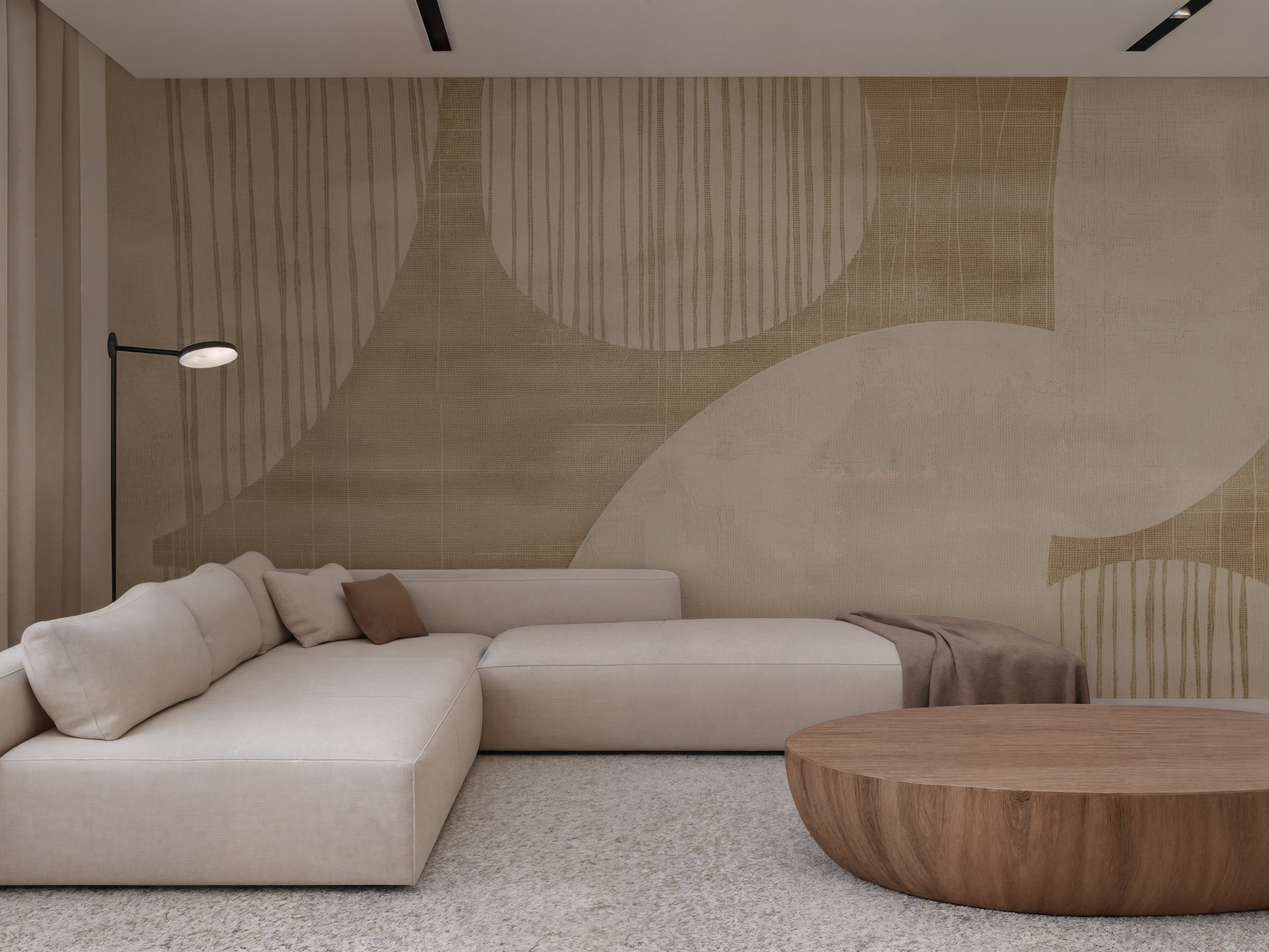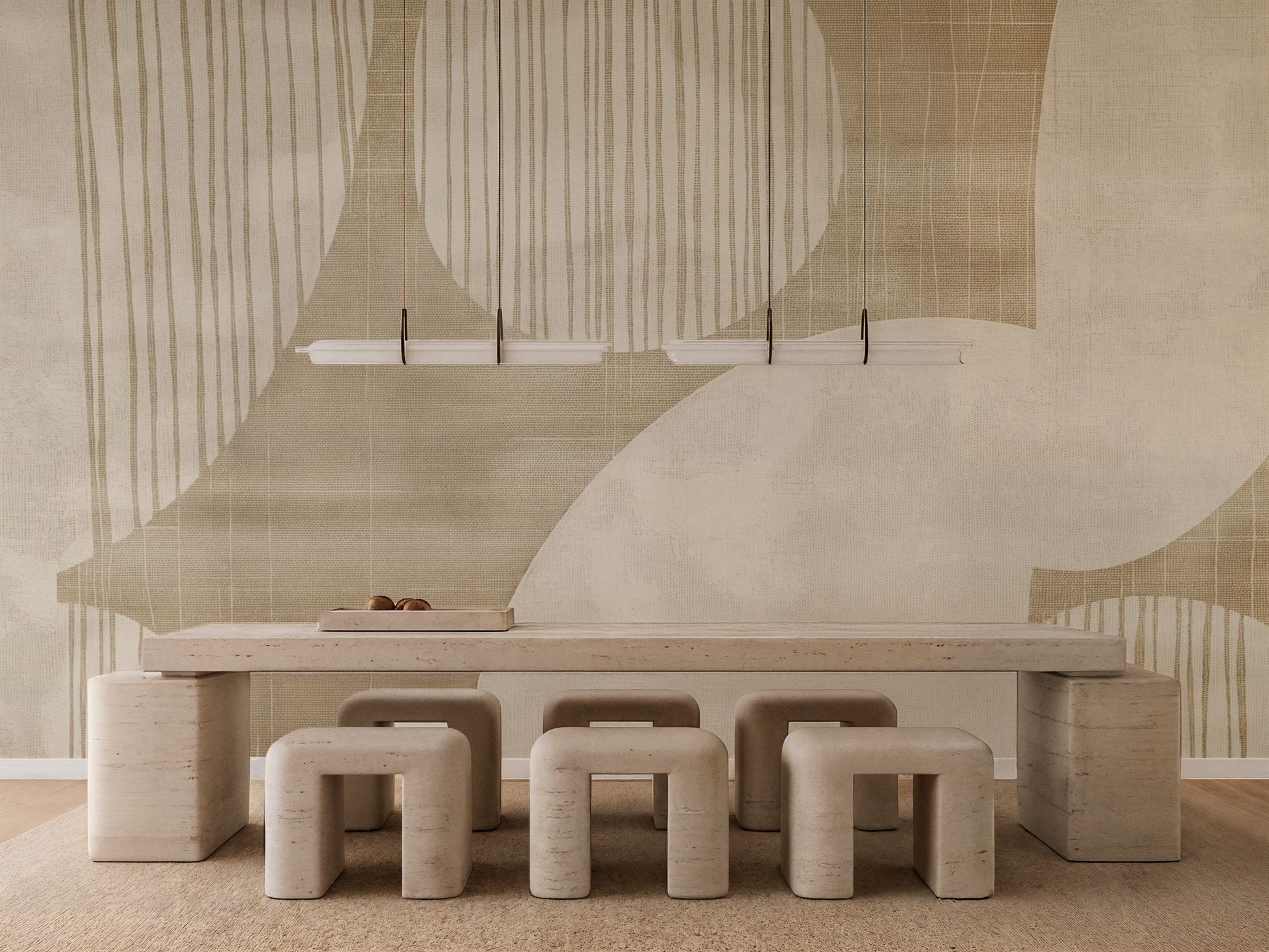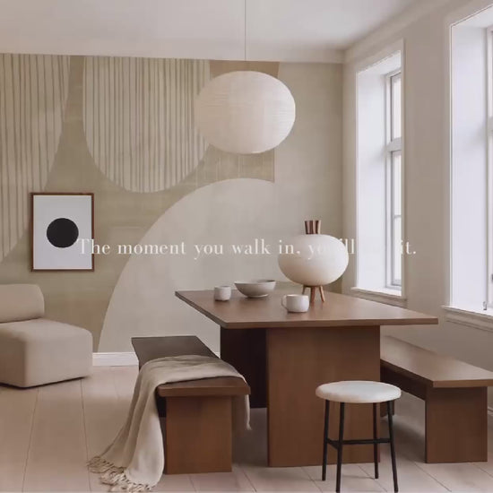 Inspired by the philosophy of wabi-sabi and the gentle repetition of natural forms, this Japandi wallpaper embraces curved lines and subtle textures in warm, organic balance. A rhythm of stillness and grace. A space to accept. A space to be.