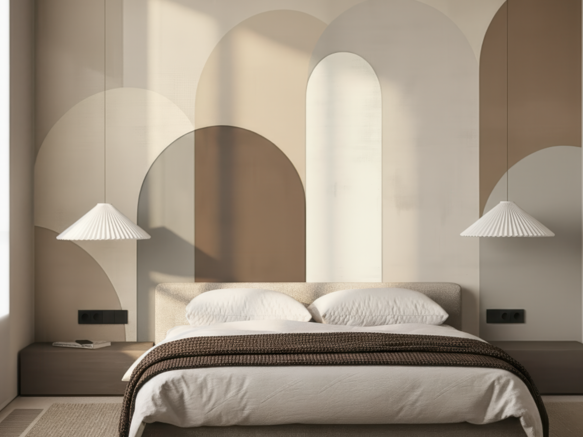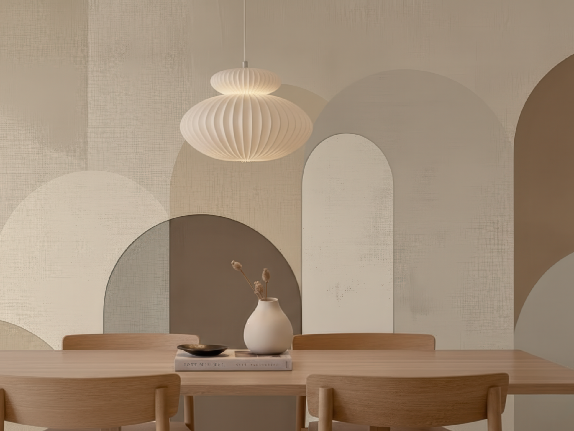 Inspired by architectural arches and the soft rhythm of retreat, this Japandi wallpaper blends sculptural simplicity with grounded warmth. A space to breathe, a space to be.